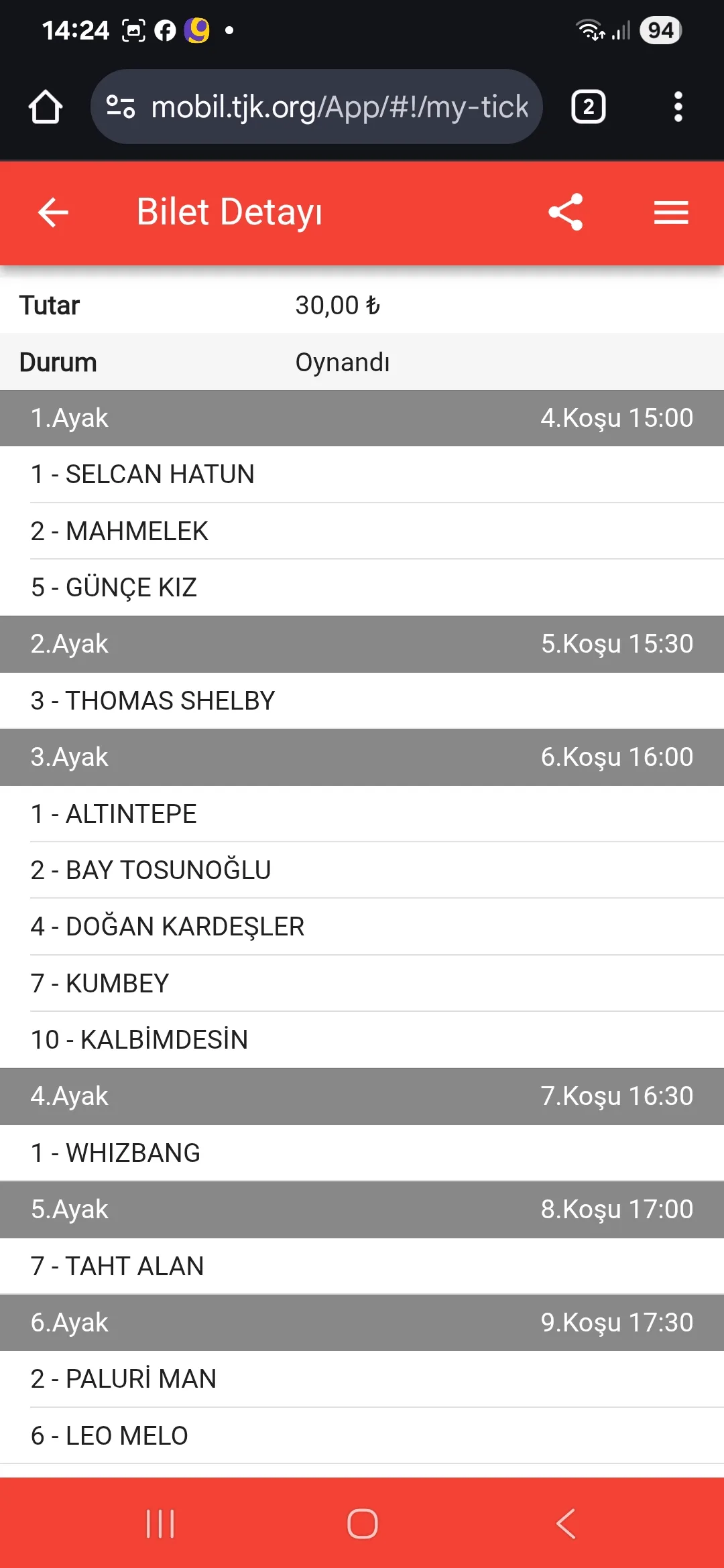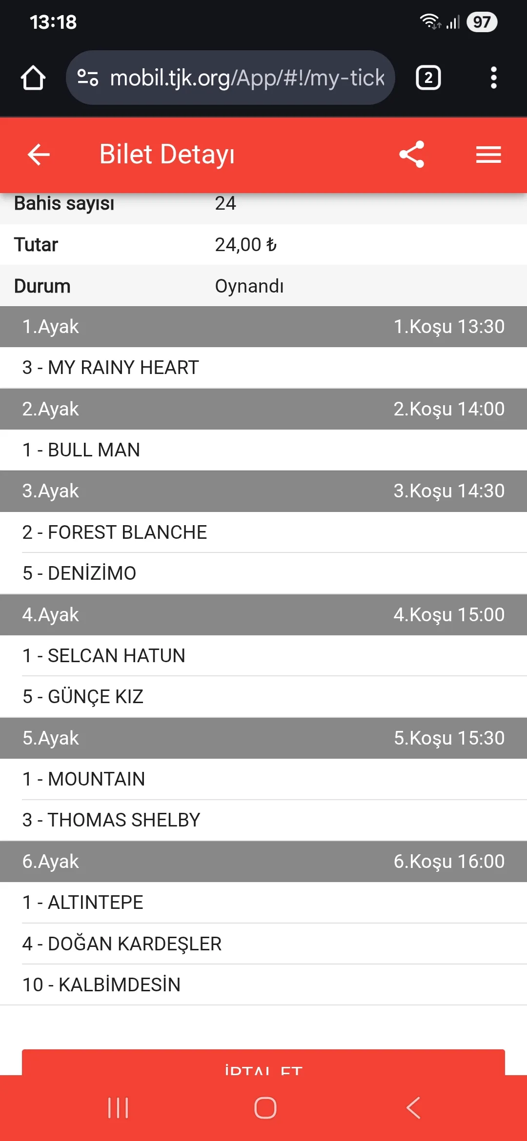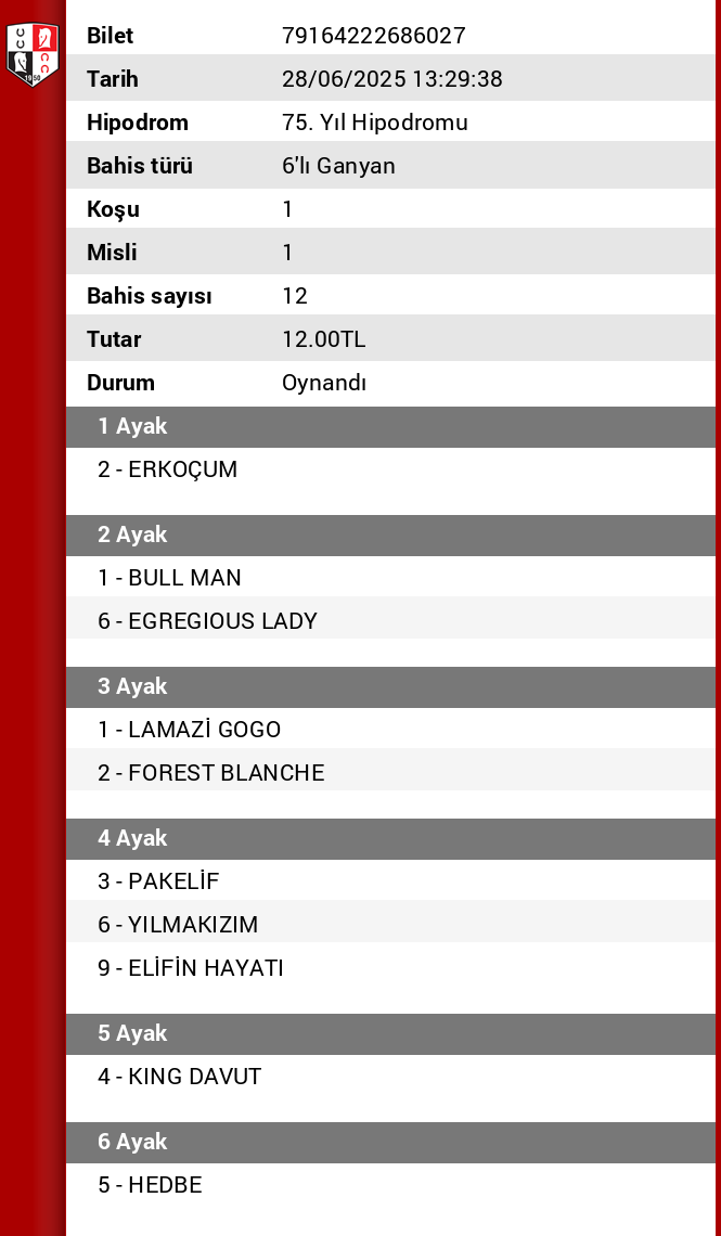 TJK Bilet Detayı