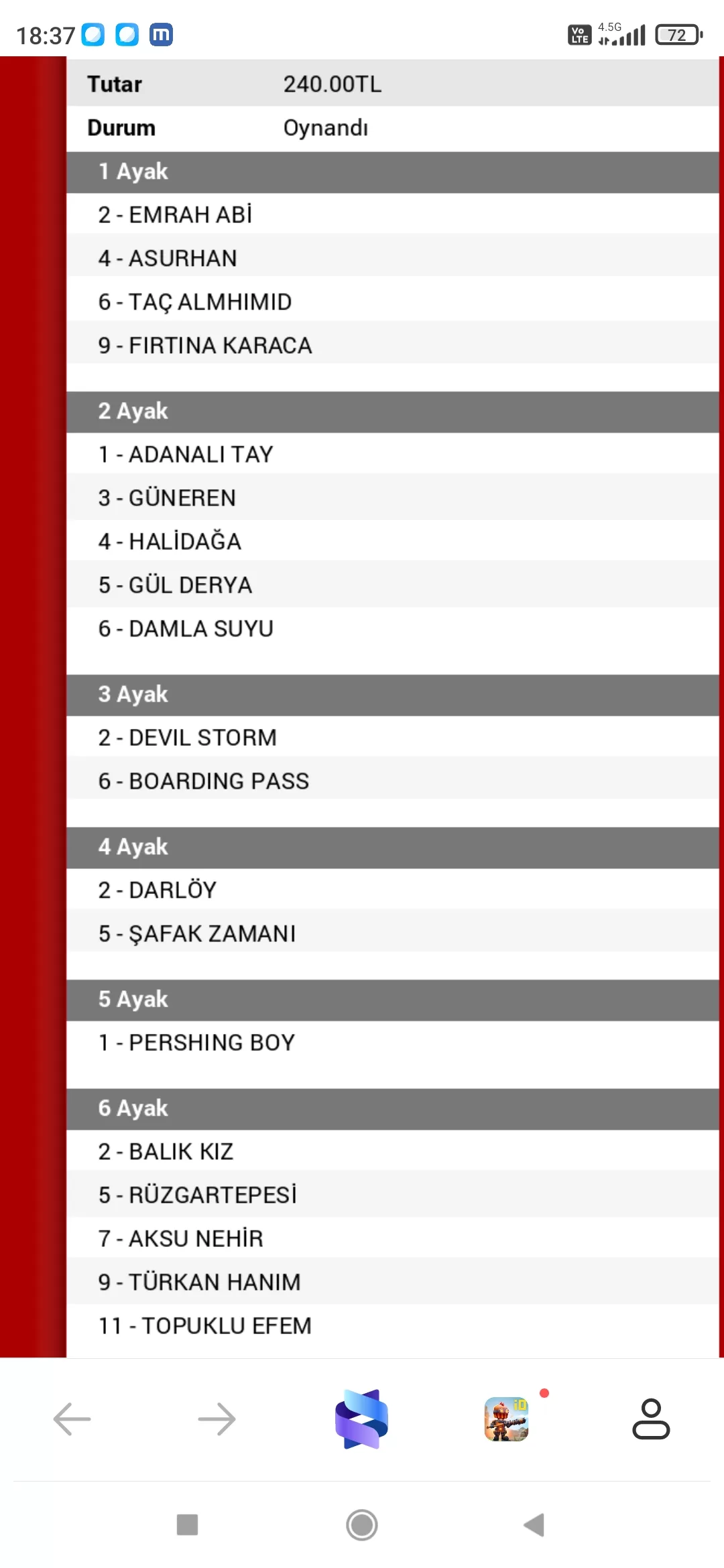 4.KOŞU: Koşan gruba bakıldığında ADANALI TAY isimli safkanın normal şartlarda bu rakiplerini geçmesi gerekir düşüncesiyle SATIŞ koşusu olmasına rağmen kazanmasını bekleyeceğim, BANKOM…