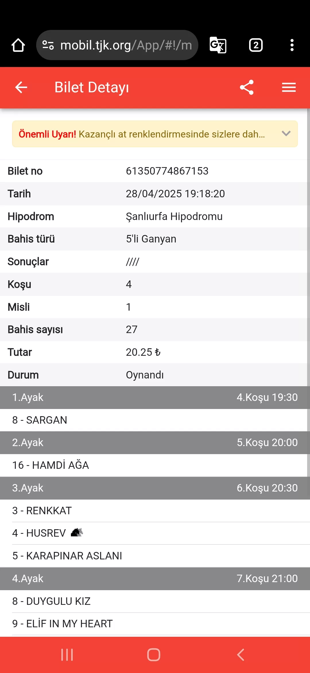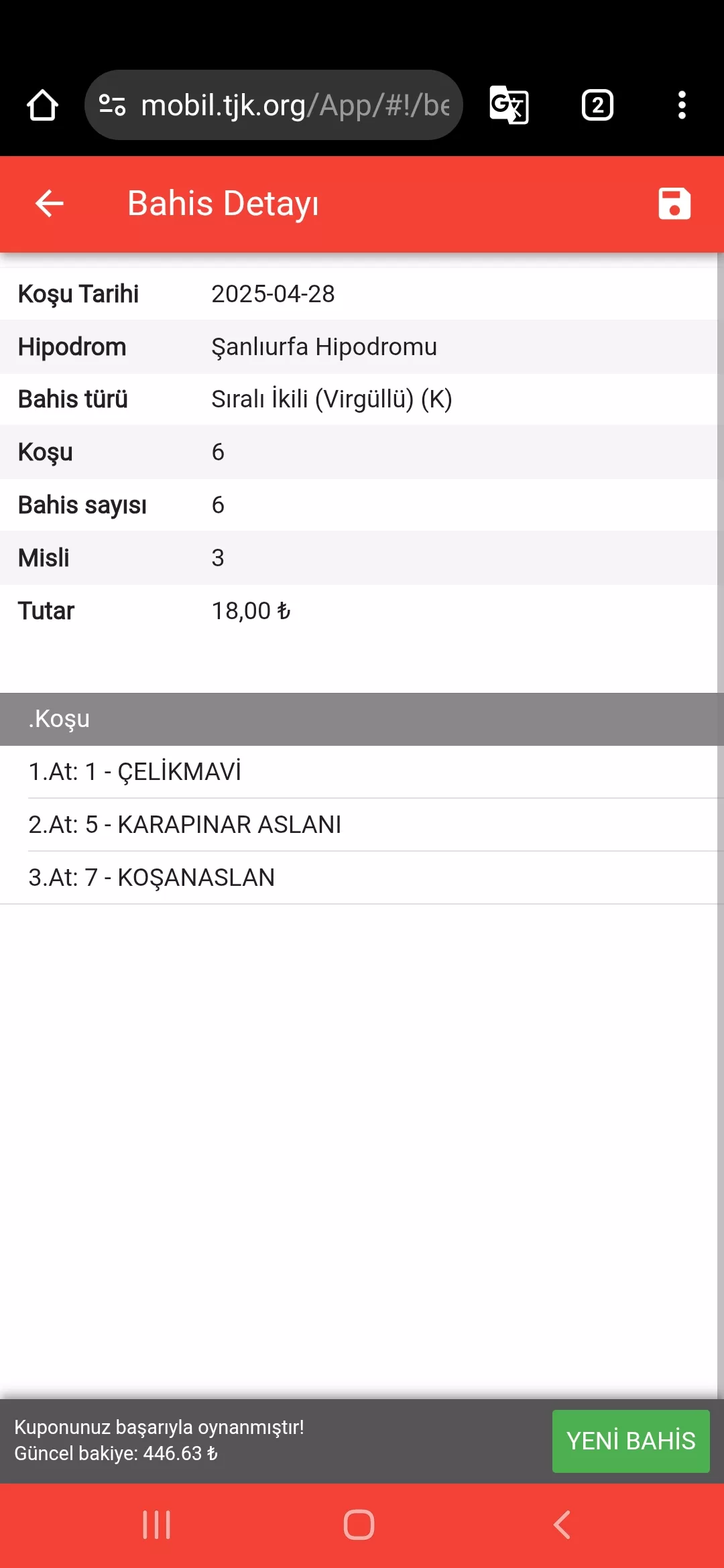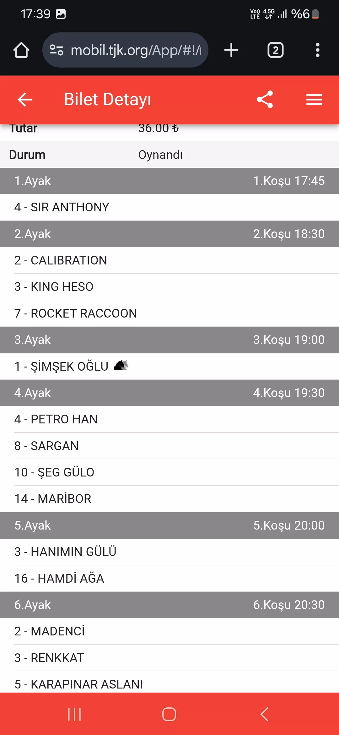 4.koşu 6 numara eklendi Bol şanslar herkese