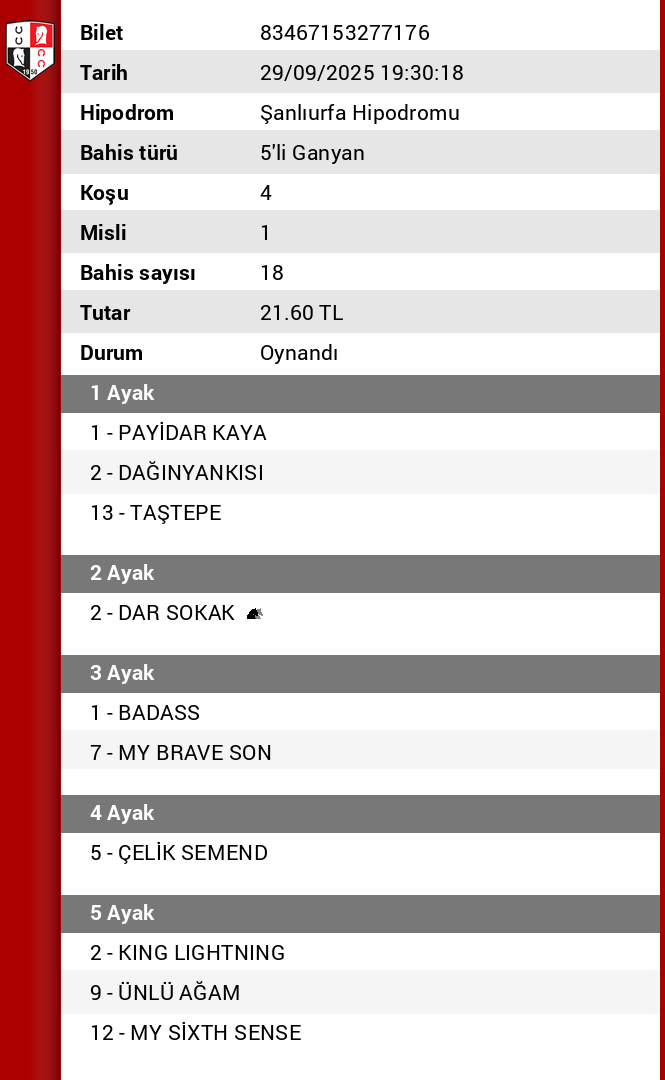 5.KOŞU : 2 DAR SOKAK alternatif banko formda safkan . at yazacaklar 1 ALTUĞBEY 3 ORTAK GÜÇ 7 UYGAR BEY