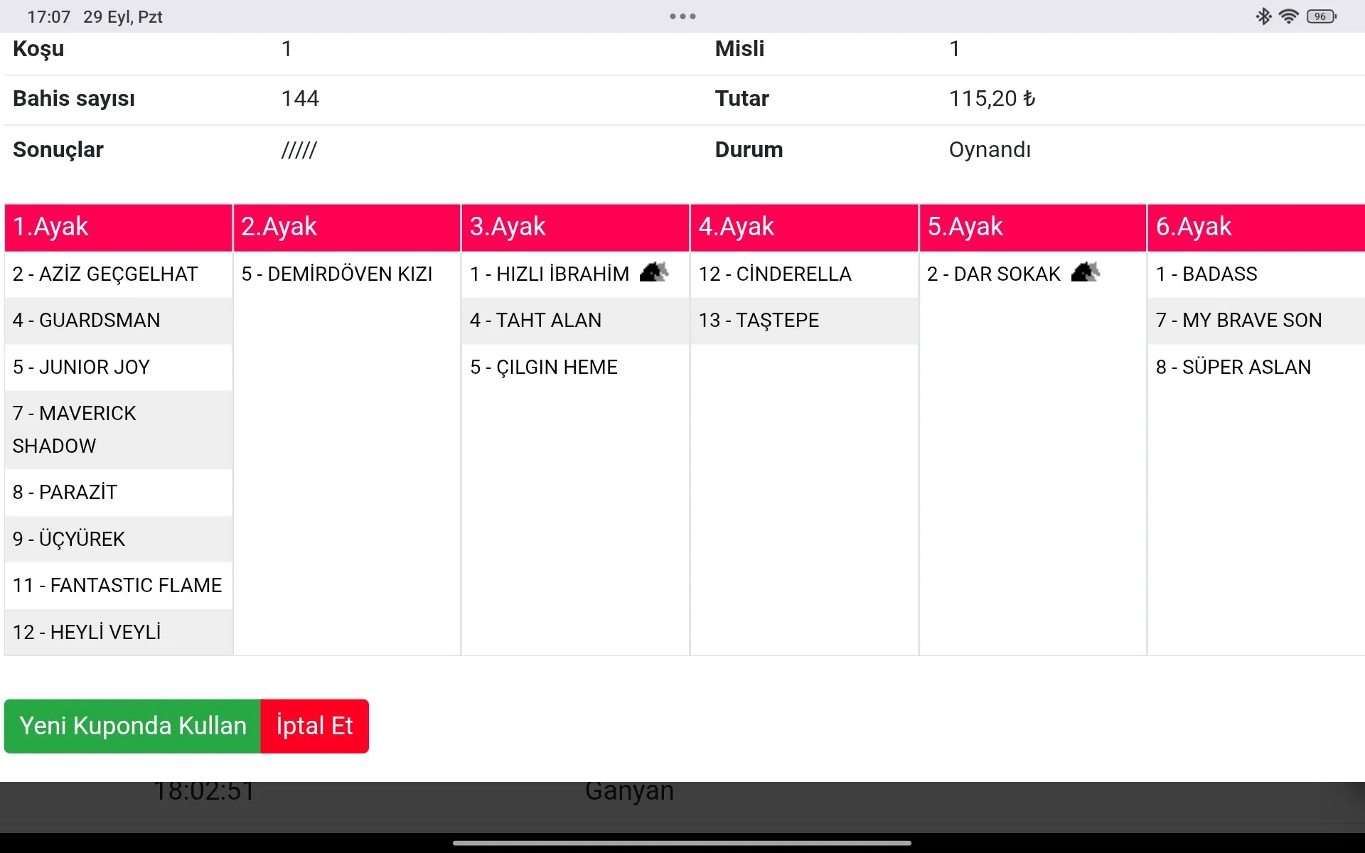 Başkanım ilk altılı kötü kaçmış, 2. altılı da patlamadı. Tutmuş tutmuştur tabi :) Tebrikler