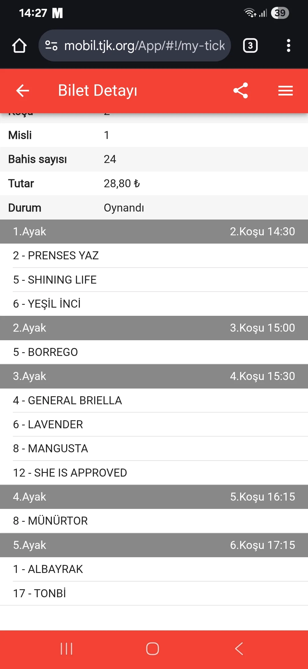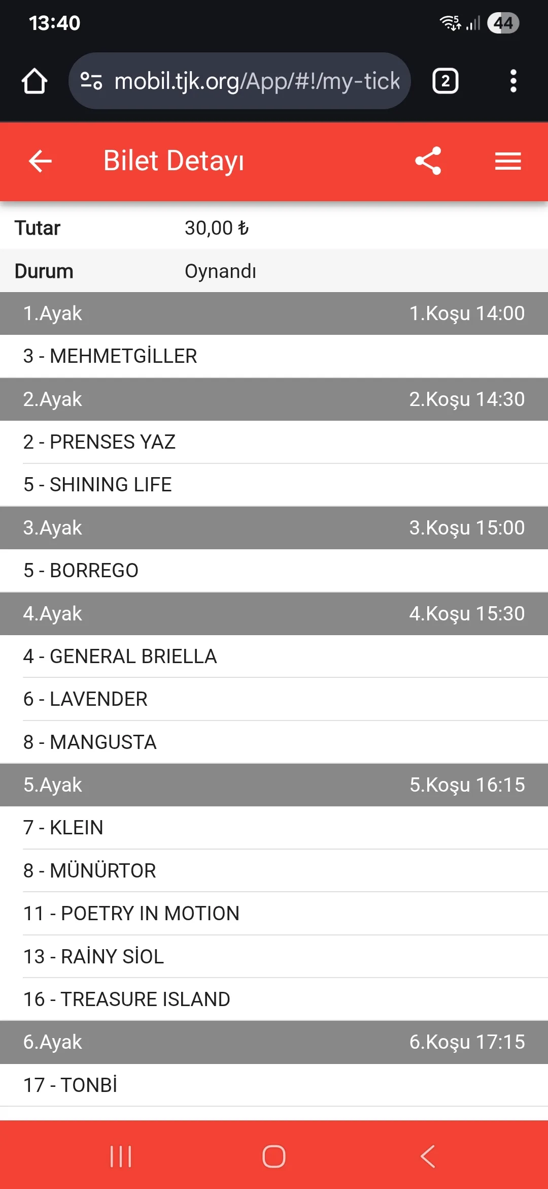 17= TONBİ : 6da6 şu ana kadar son ERKEK TAY DENEME yarışını kazanınca GAZİ nin favorilerinden olacağını garantiledi ama bir eksik selim kaya binmeyecek bu isime maalesef akyavuz ile ne yapar bilemiyorum gerçekten sahipleri için sıkıntı bir durum sinir bozucu ama yinede koşunun favorilerinden olacaktır
