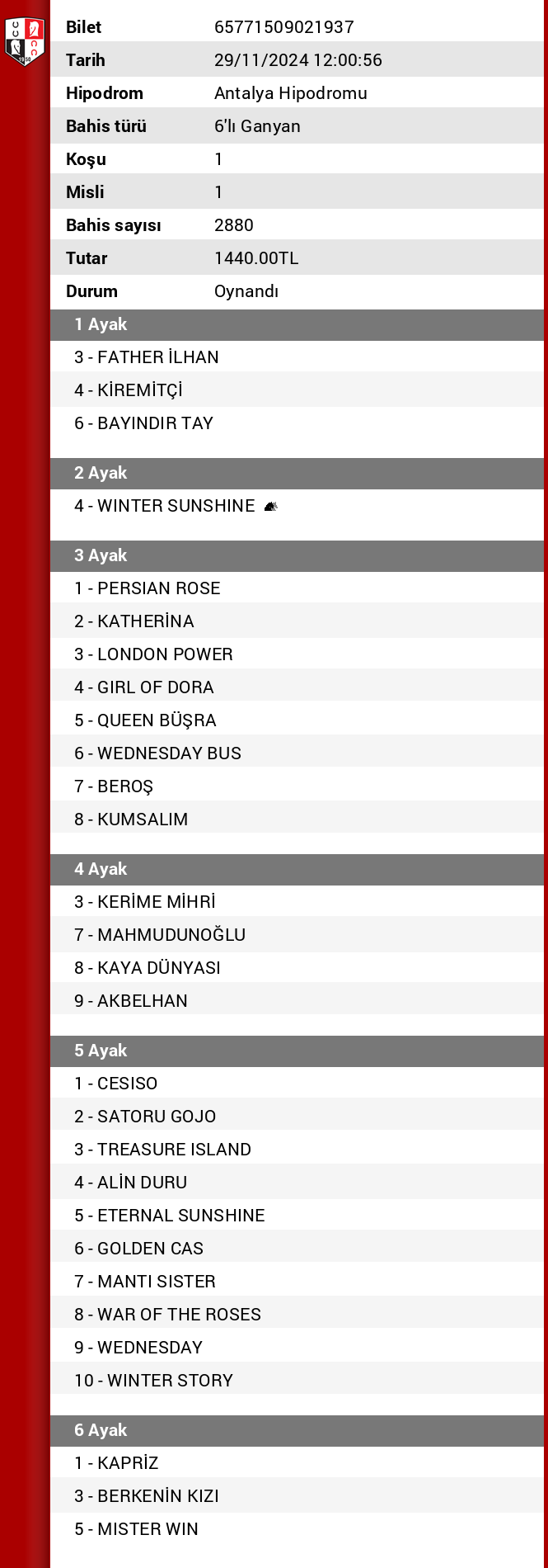 Yarışsever dostlara selam olsun. Yazdığınız ganyan olsun bol şanslar