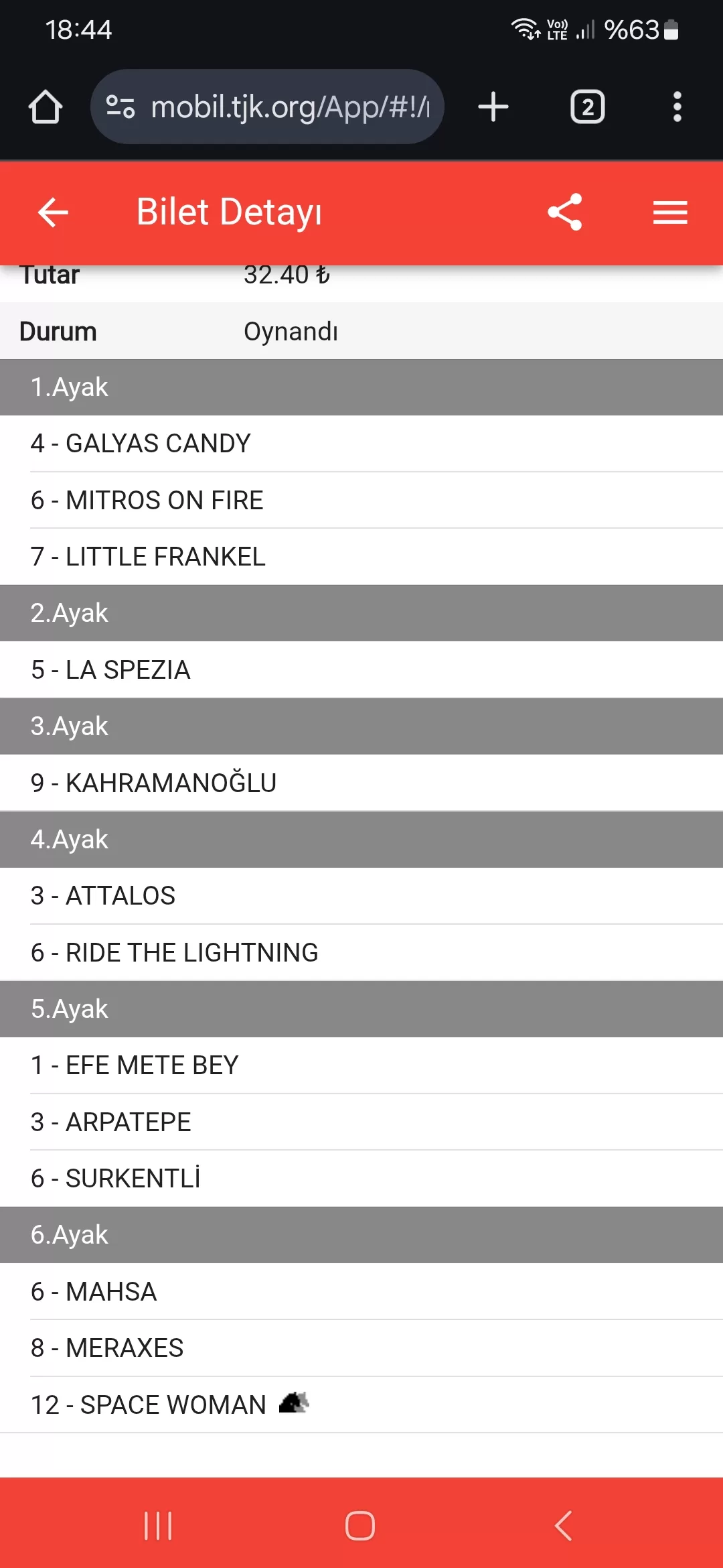 Bahis sayısı 40 Tutar 24,00 ₺