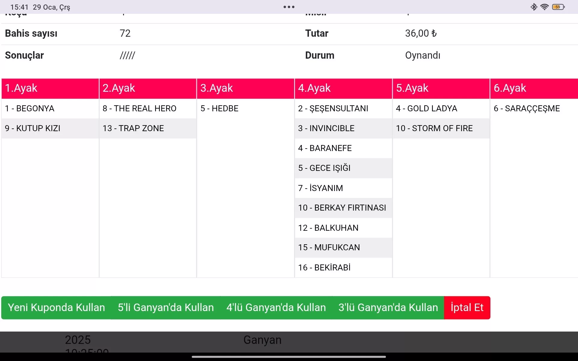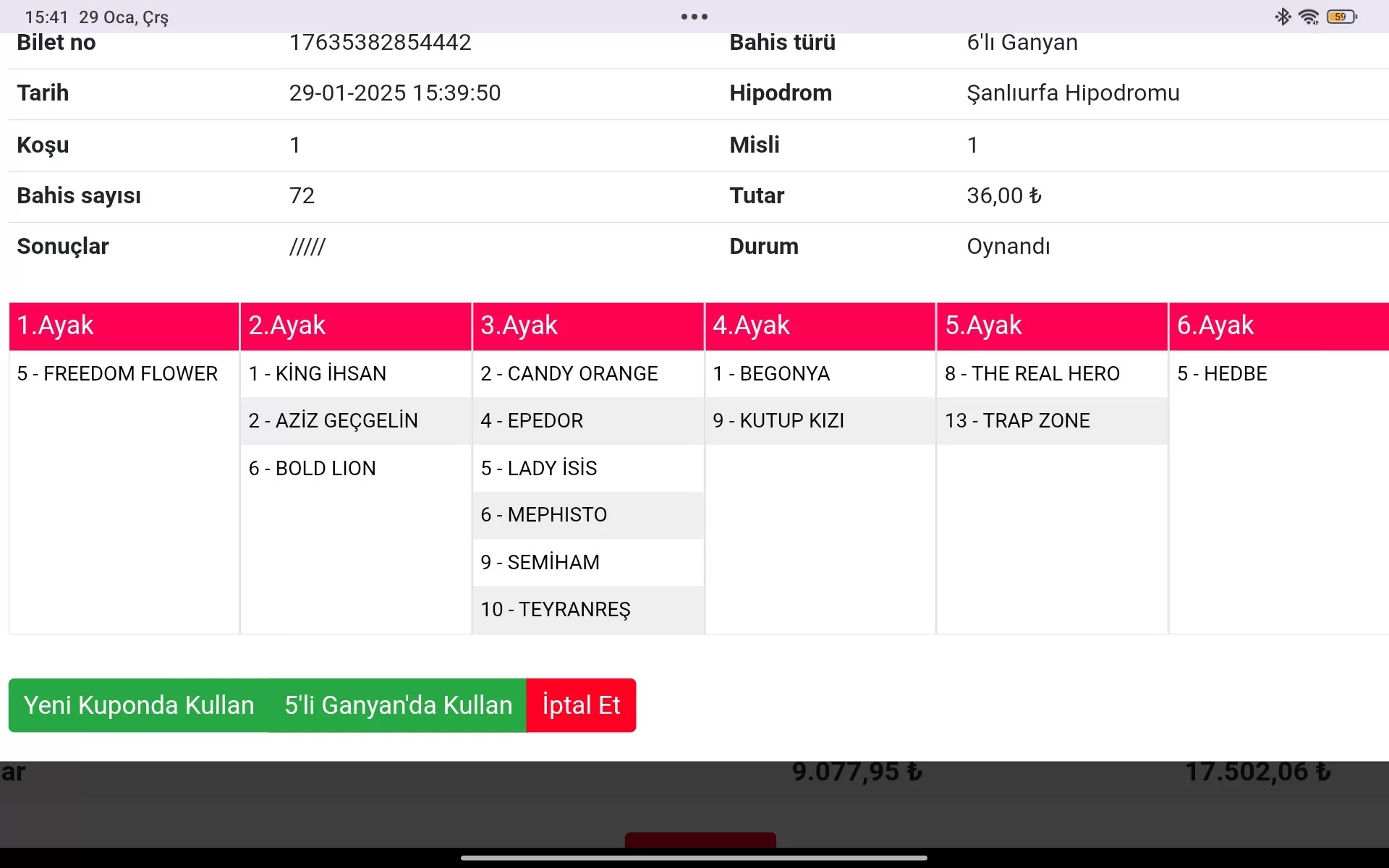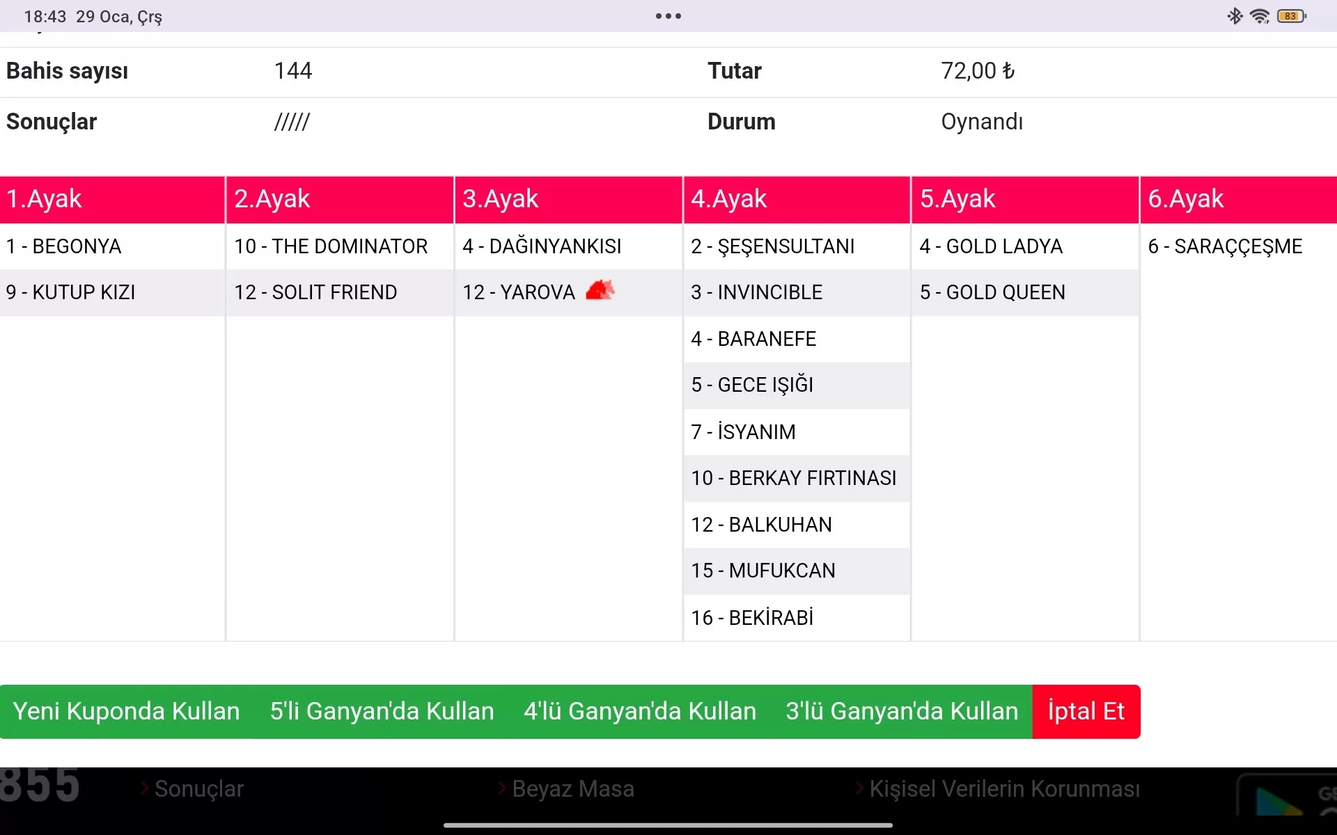 6.KOŞU : 5 HEDBE 1 ATİK ATİK 7 KAANHAKAN 10 OĞLUM KAYRA yeterli olur gibi