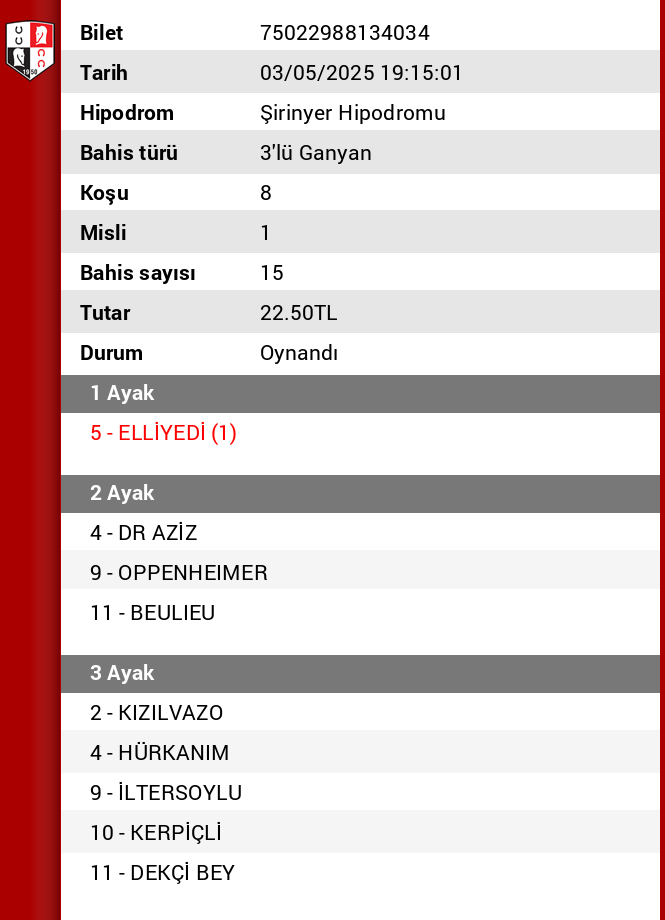 Seninki tutar büyük ihtimalle 🧿bol şanslar