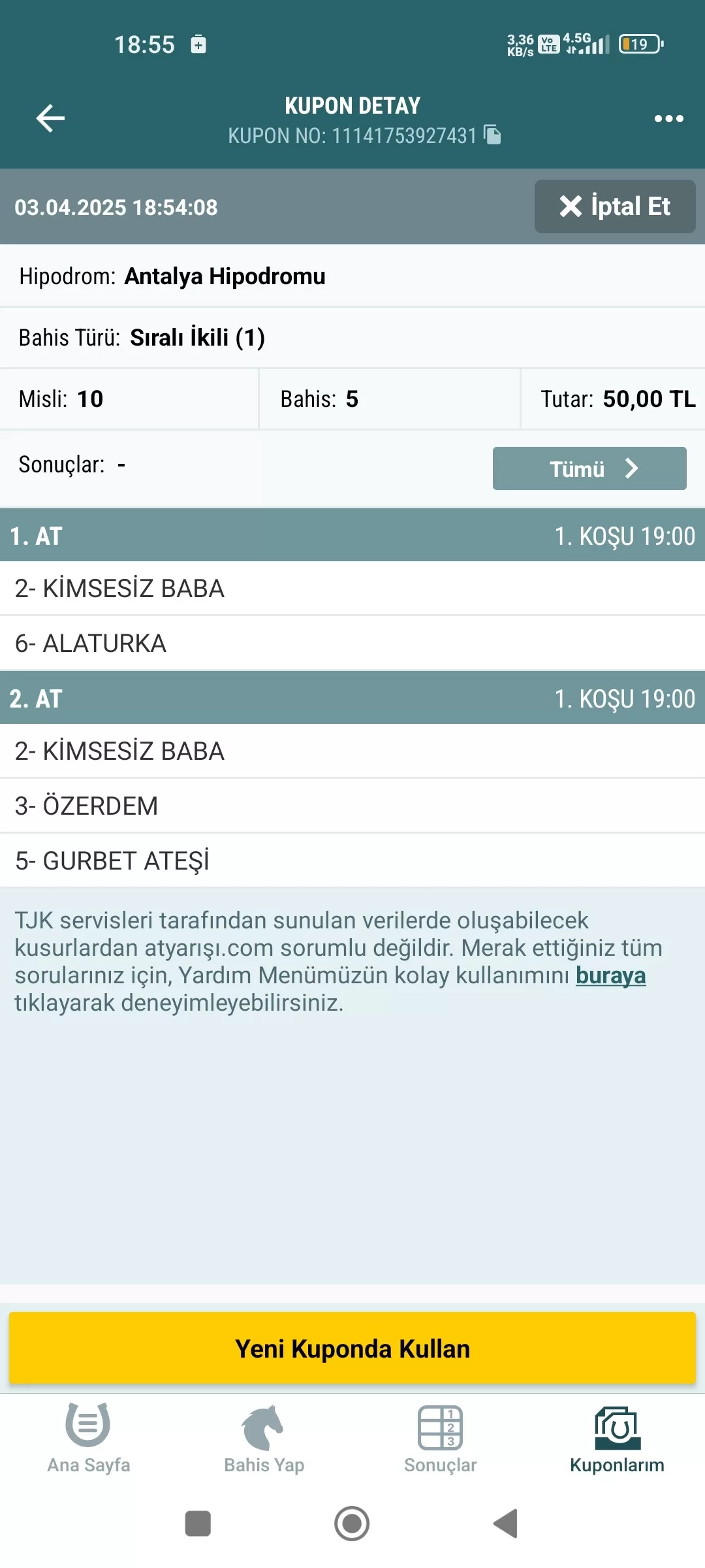 bu antalya bana lanetlı ılk ayak . hepsı desem yarıs ıptal olur o derece gecemıyorum tek at bıraksam cıkar o gelır :D