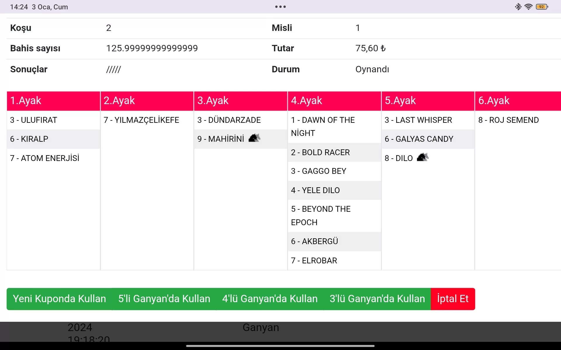 Eyvallah abi 2.ayakta geçen seferde tek attım gelmedi takip ettiğim at bir aksilik olmazsa bunları çok rahat geçmesi lazım