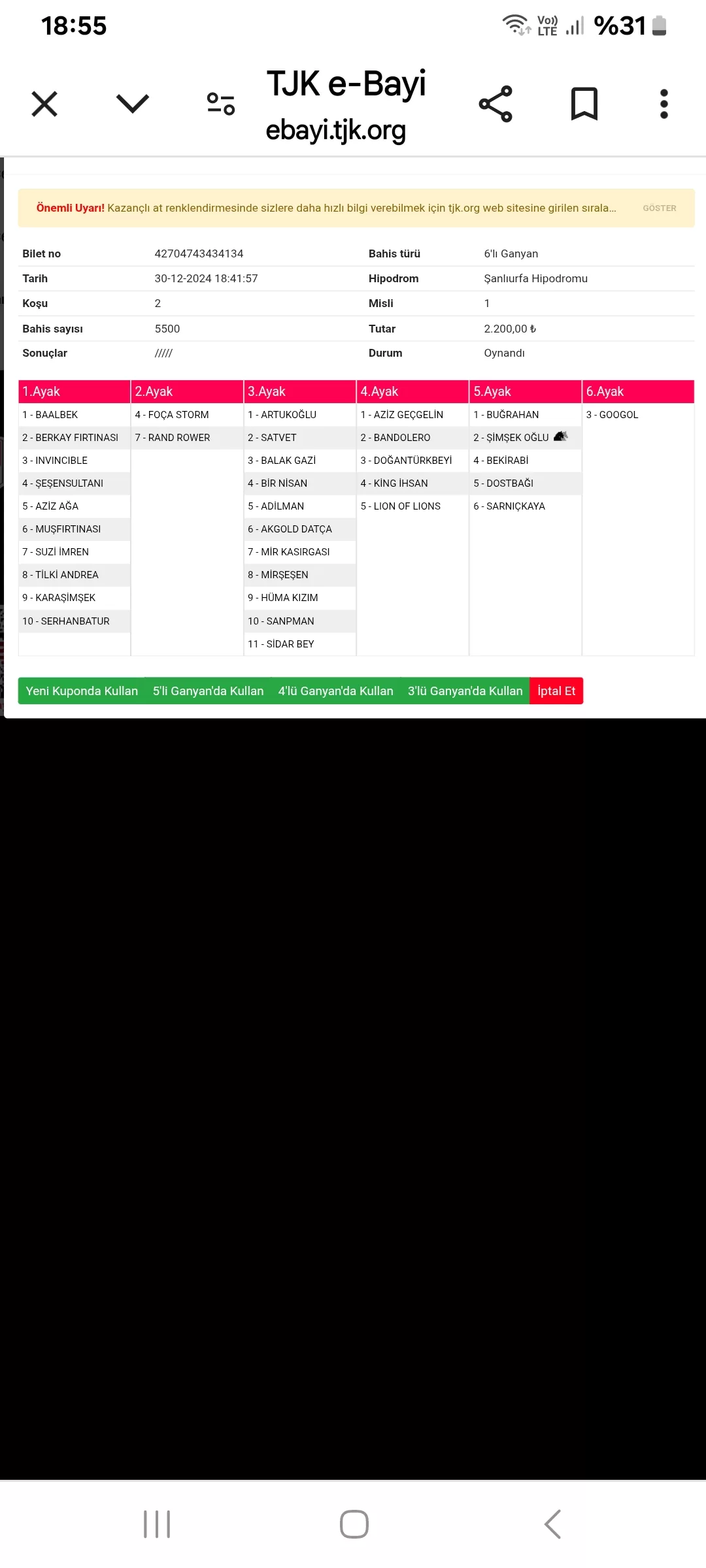 Son ayakta 1 numaranın ganyanı düşüktü ona aldandım, birileri asılmış yalandan ata sonra iptal etmiş :)