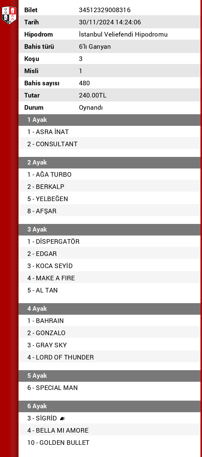 1 ayakta ilave yaptım ASRA İNAT yaptım eğerki öğrendiklerim doğru ise iyi koşar kazanırsa nedenini yazarım uzun uzun yazmayayım.