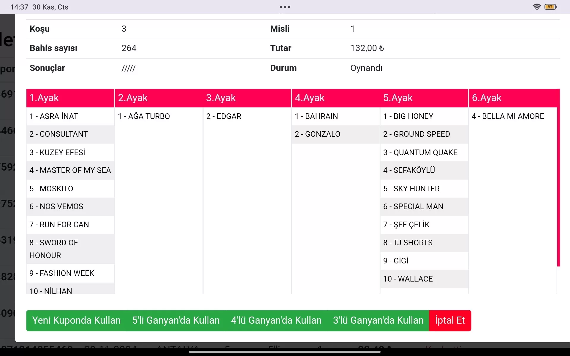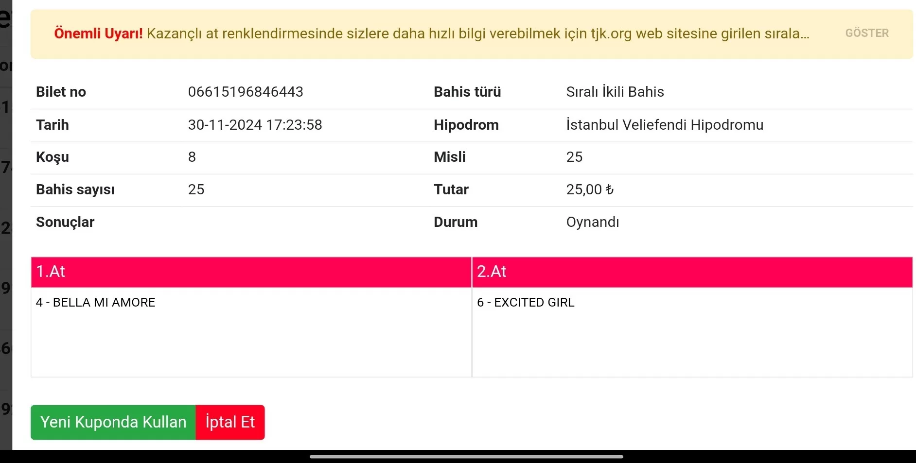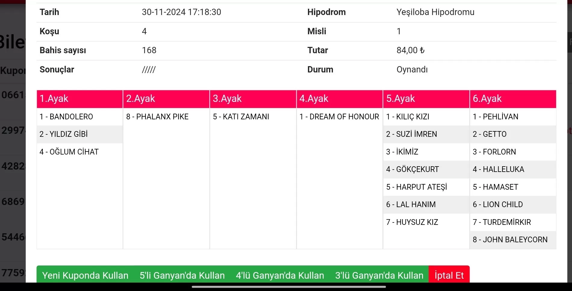 Bugün şehir dışında yoldaydım İzmir için bir şey paylaşamadım en azından 2 nci ayak ganyan ve son ayak çiftesini hep beraber yapardık banada kısmet olmadı ama.