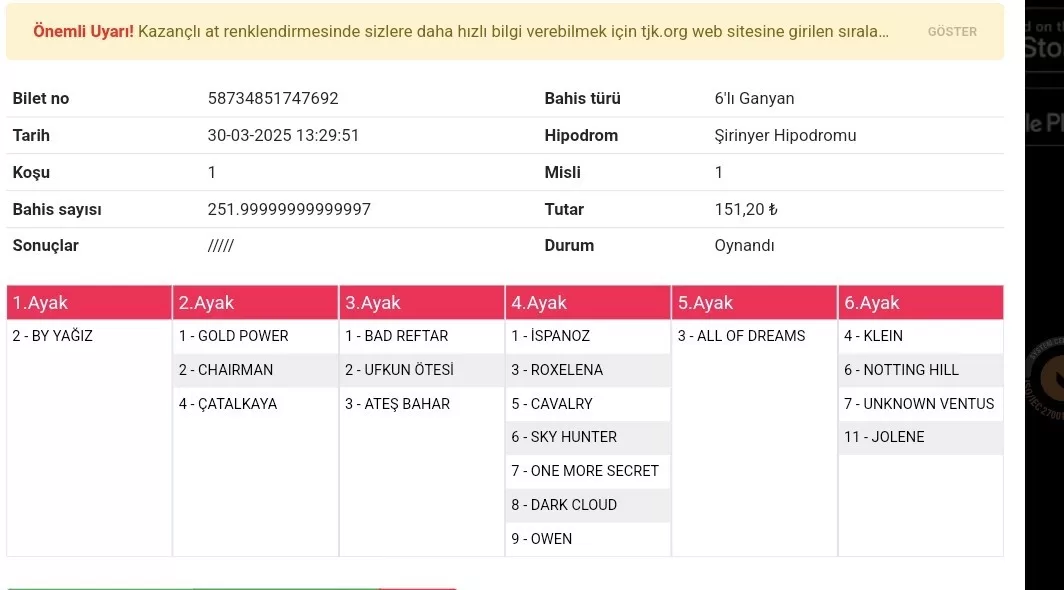 İkinci altılının ilk ayağında 5 CAVALRY 🏇Dikkat🏇
