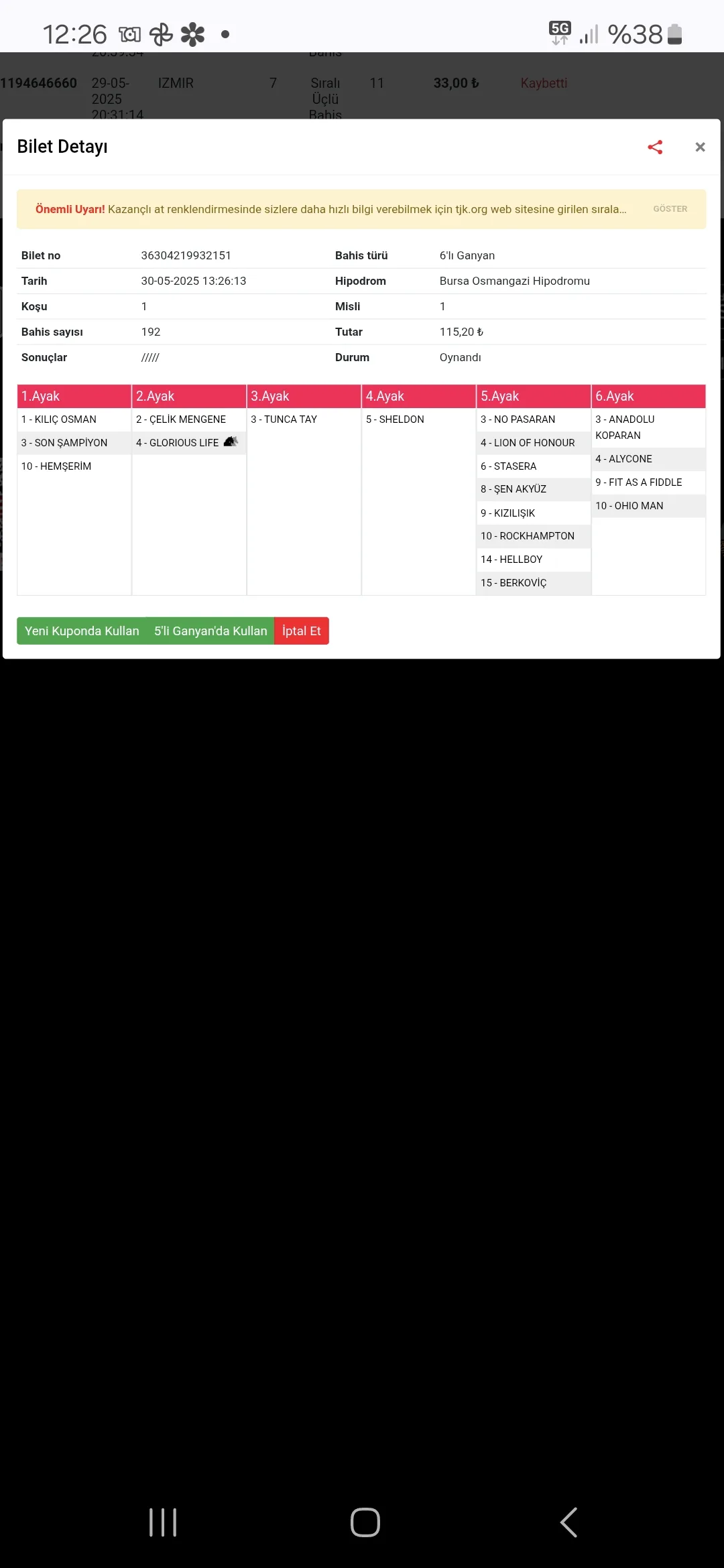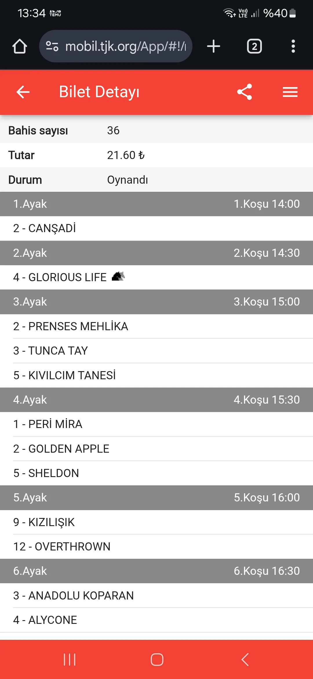 TJK Bilet Detayı