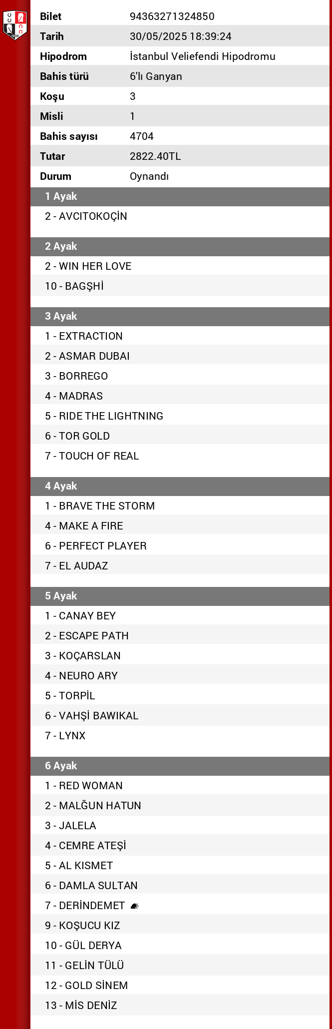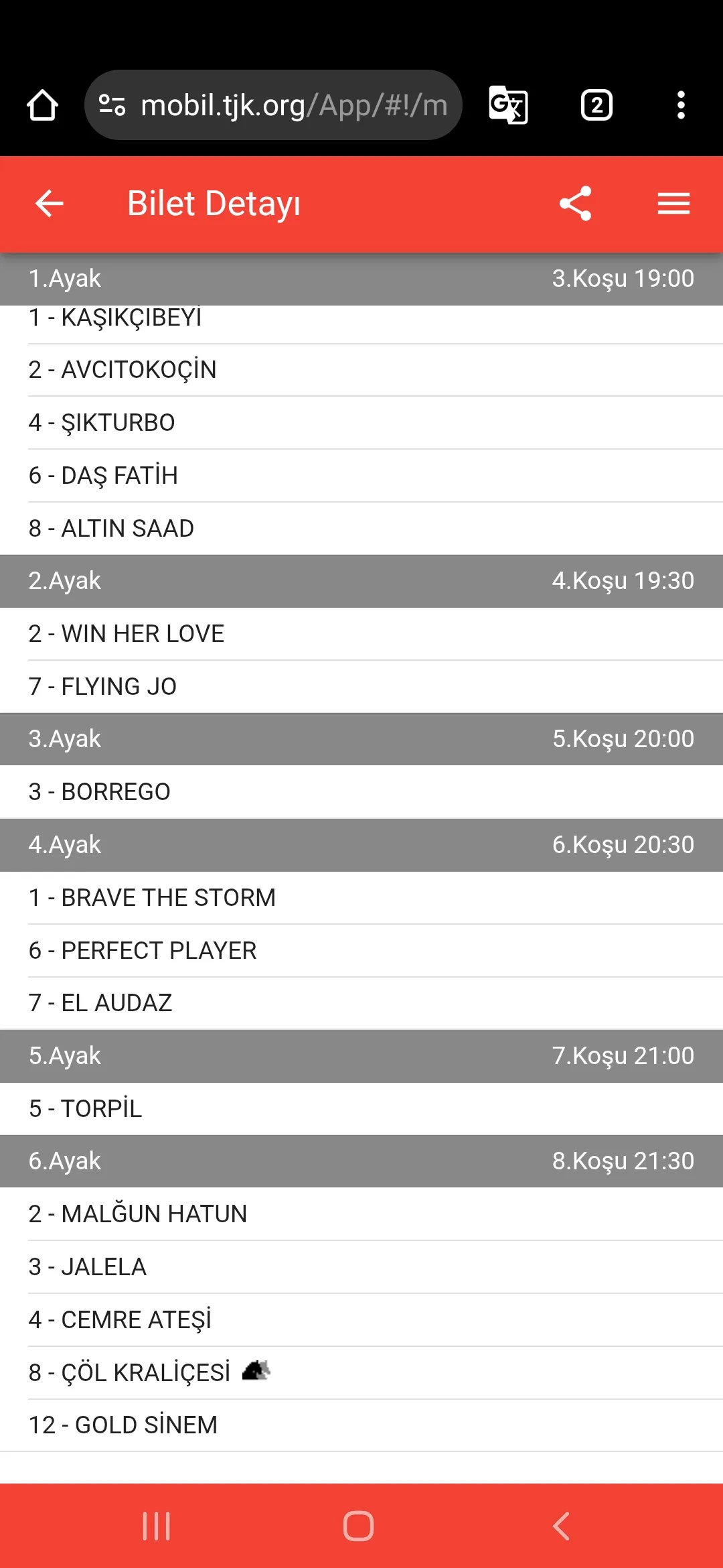 TJK Bilet Detayı