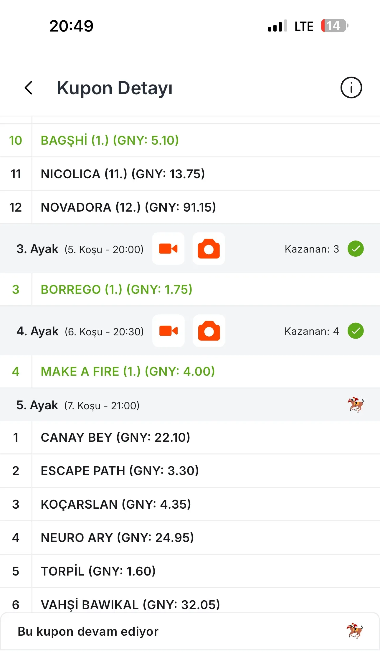 Bol şans en tuttuğum atla tek geçmişsin umarım gelir