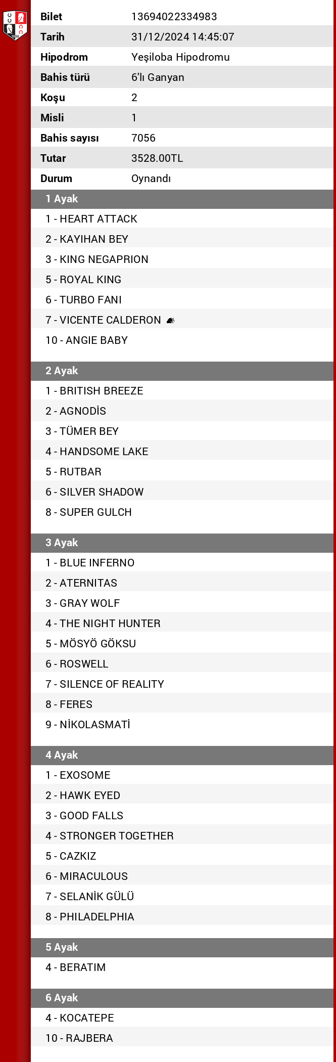 Herkeze tekrardan bol şanslar 6 numaralı TURBO FANI son yarışında 4 boy takılıyo burda iyi çıkarsa alternatif tekim olabilirdi ama ben riske atmayıp 3 atla geçiyorum 1 numaralı HEART ATTACK dikkat…!