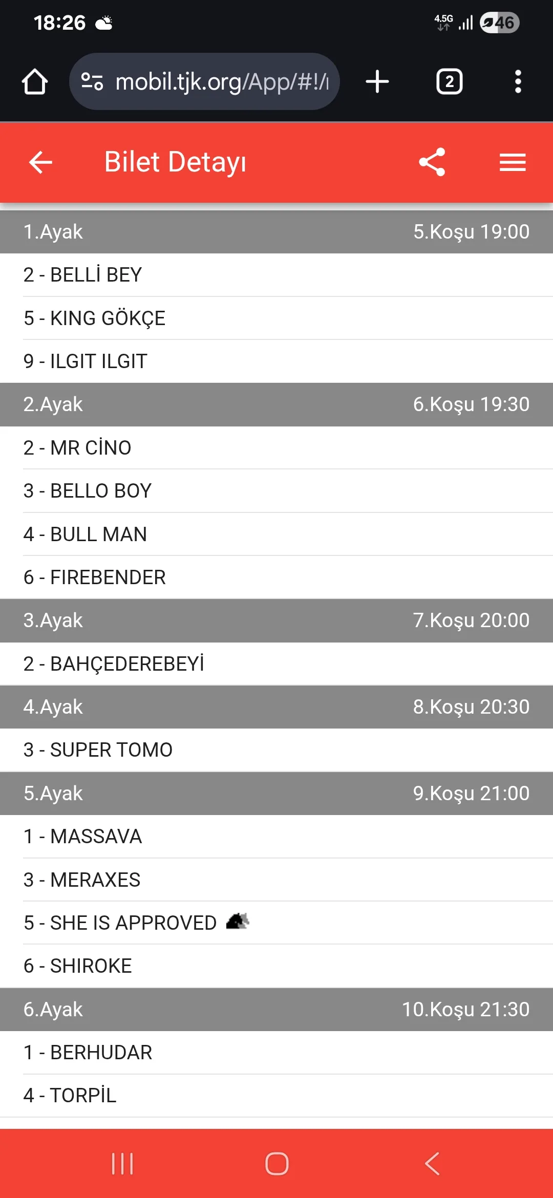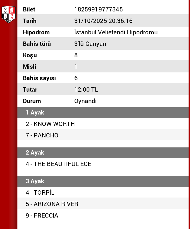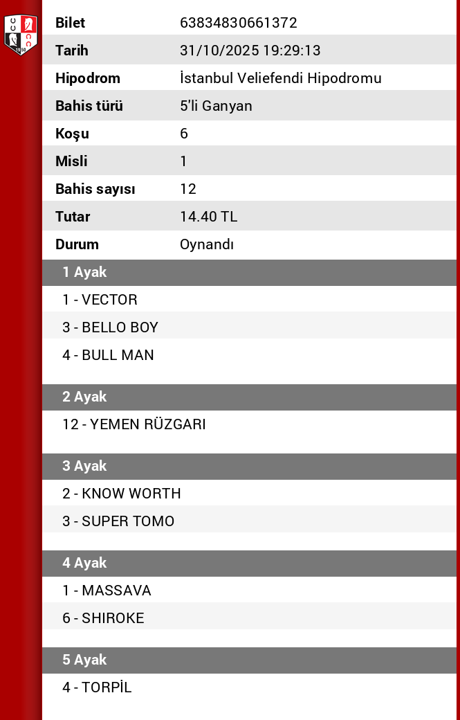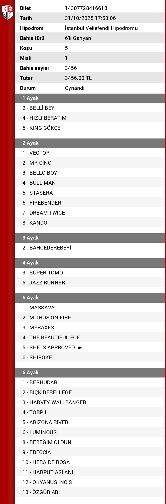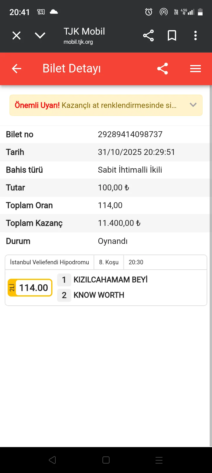 TJK Bilet Detayı