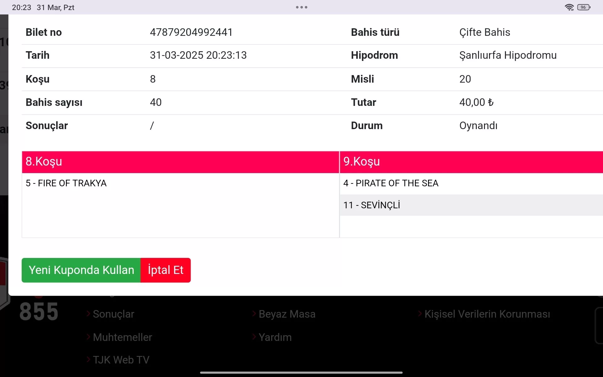Oluyor oyle Adminim saglik olsun ama sonu yok ki. Bazen gereksiz fazla at yaziyoruz, bazende cesitli nedenlerle tuttugumuz ati yazmayacagimiz tutuyor. Perde kosular kostuktan sonra aciliyor maalesef.