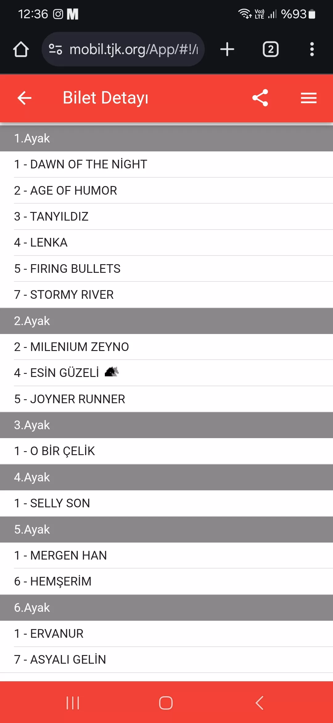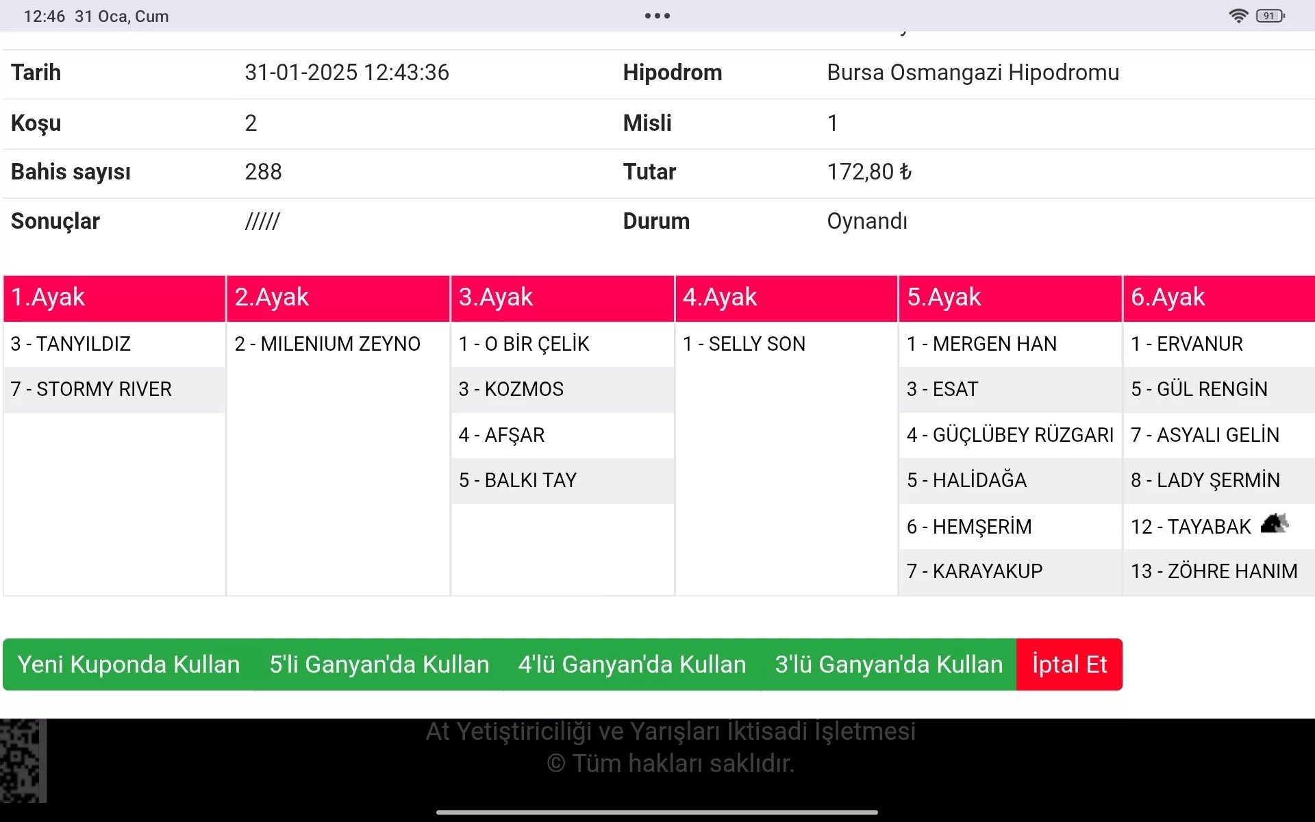 Bilet no 27966630856480 Bahis türü 6’lı Ganyan