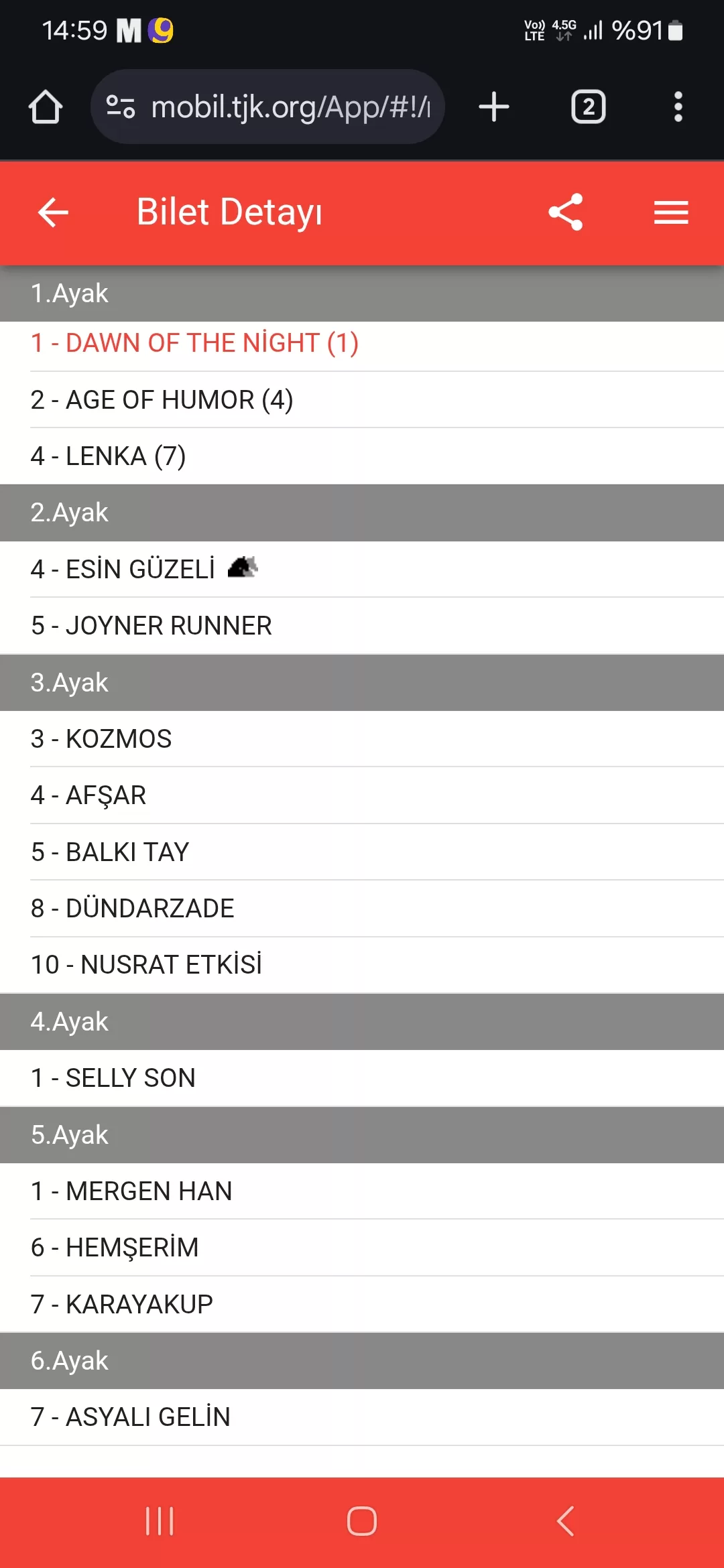 6.AYAK: Tahmin için vaktim yoktu fakat 7 ASYALI GELİN görünce hızlı bir oyun çıkardım. Geçen seneden bu yana takipteyim bu ismi ve pek varlık gösteremedi. Son koşusunda ise düzlüğe resmen elde geldi ve yakın ara 4. kaldı. Düzeldiğini varsayıyorum ve kendinisi tanıyan binicisi ile kazanmasını bekliyorum.