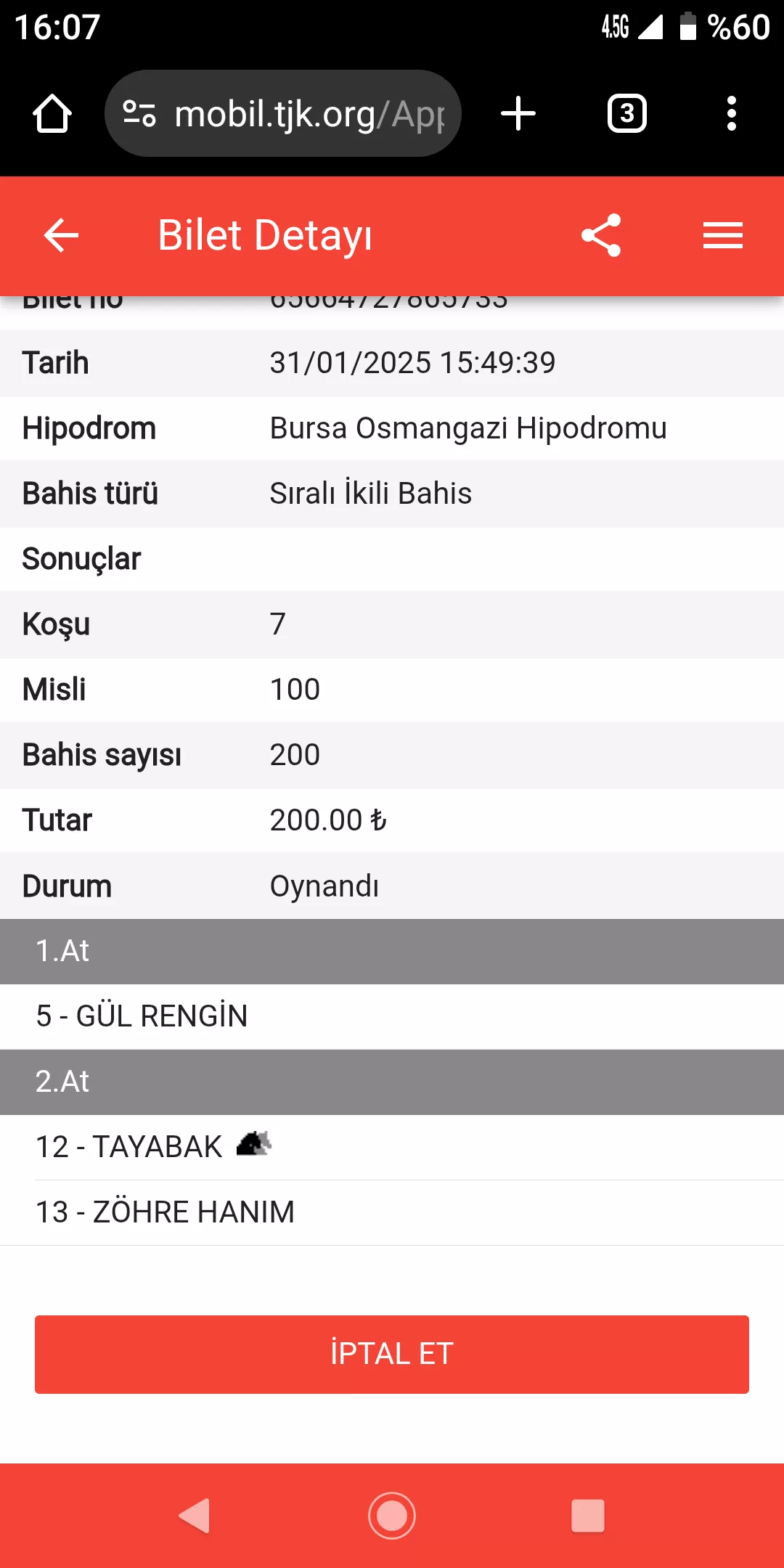 Tarih 31-01-2025 14:27:22 Hipodrom Bursa Osmangazi Hipodromu