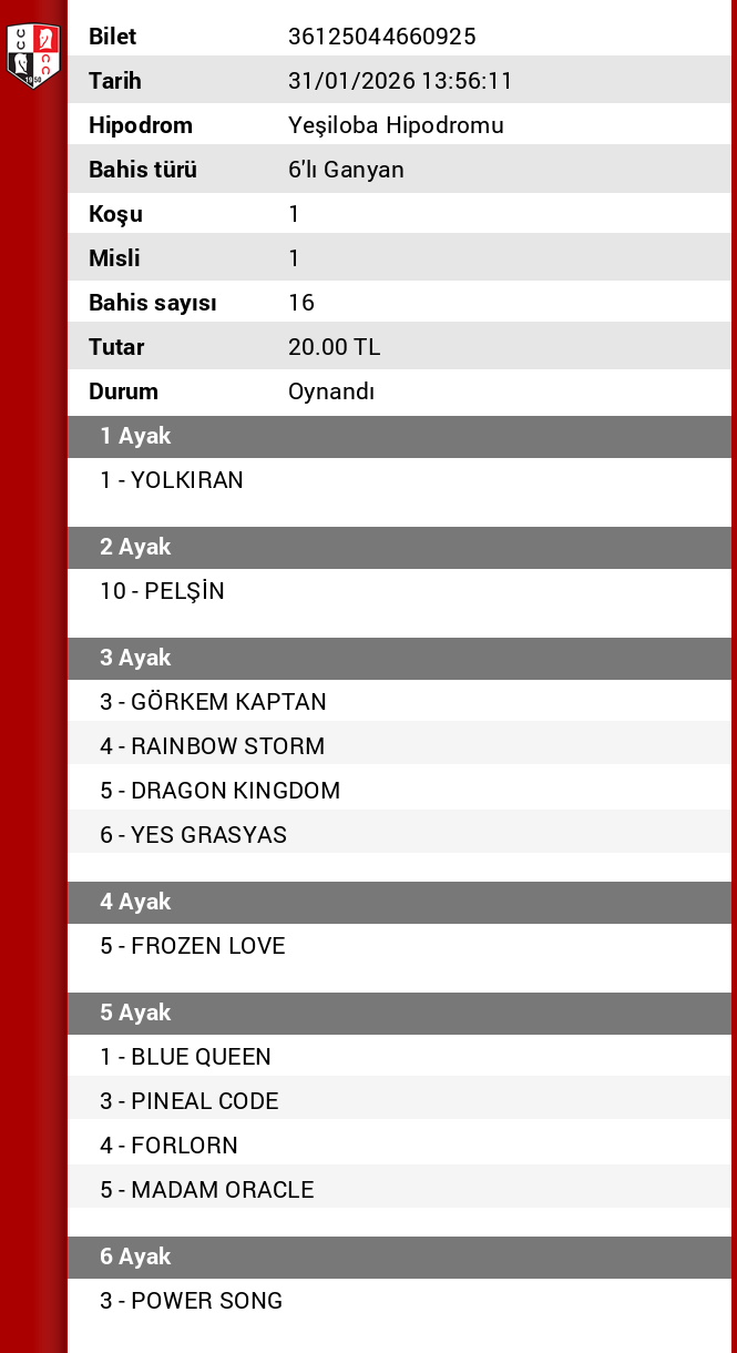 7’li ganyan 1. ayağında 3 GÖRKEM KAPTAN’ın kazanmasını bekliyorum.