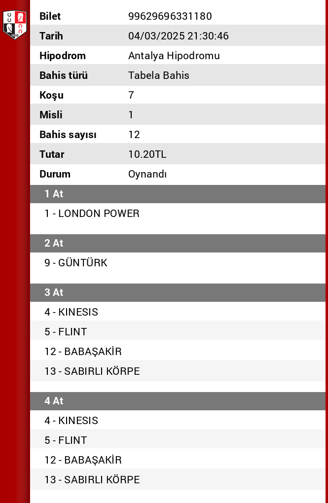 Tarih 04-03-2025 19:30:08 Hipodrom Antalya Hipodromu