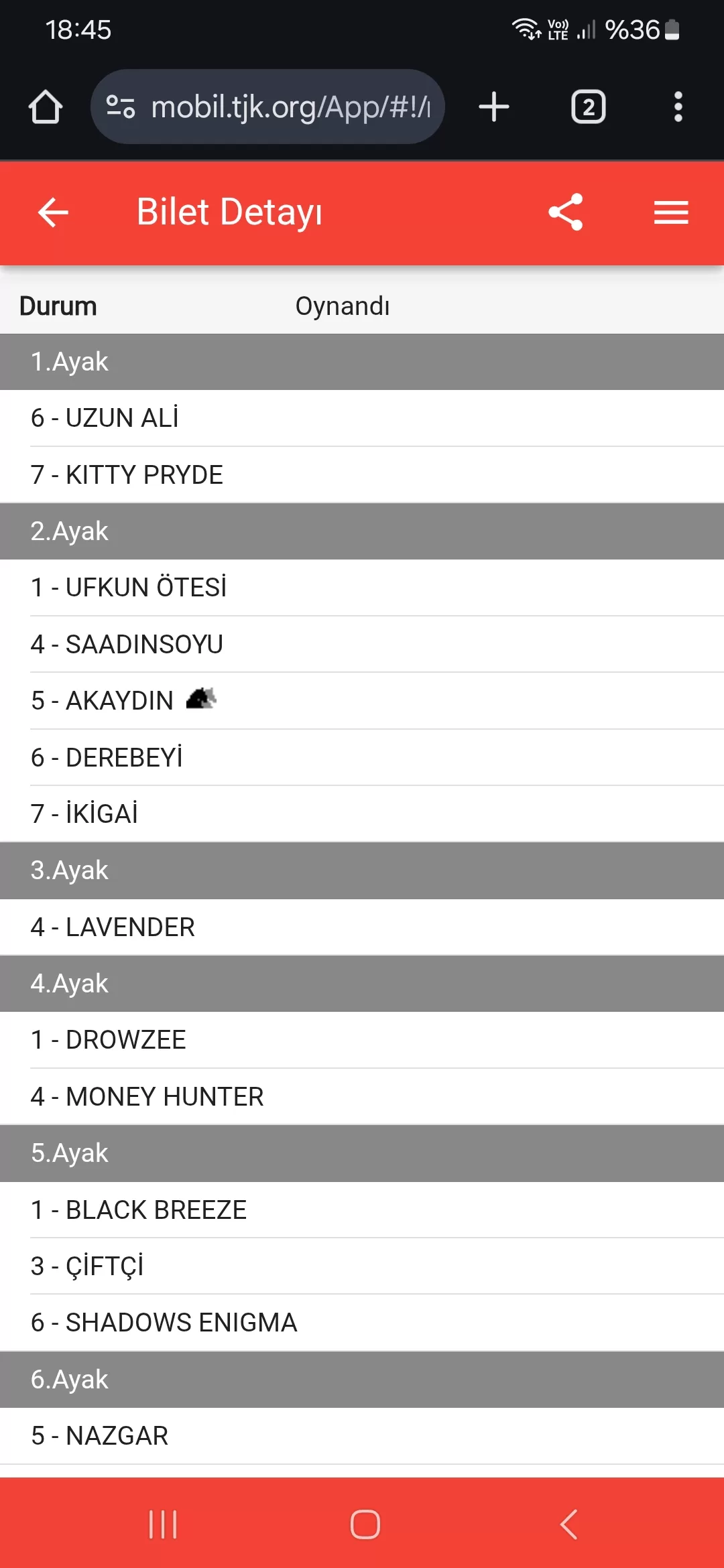 • Altılı Sonuçları