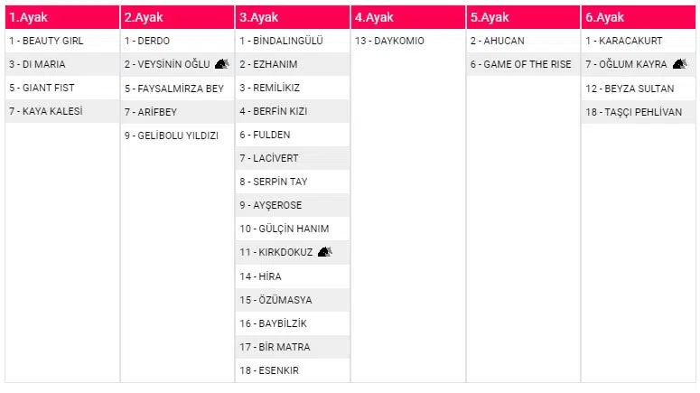 Abi çok üzüldüm 3 nolu renkli kızı iki atta yazdım adrian abi geçen hafta iki atta vermişti sonuncu oldu pis t ıslaktı bu gün gelirmi diye ona bakarak yazdım adrian abinin yazdıklarını not almak lazım doğu yarışlarında ama merak ettim geçen hafta neden kafa atı yazıp bu hafta yazmadi