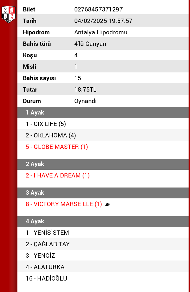 4 Şubat Antalya için tahmin gelmedi. Hızlı bir oyun çıkardım. Çıkan atlarla agf değerlendirme var ona göre eklerken dikkat edin.