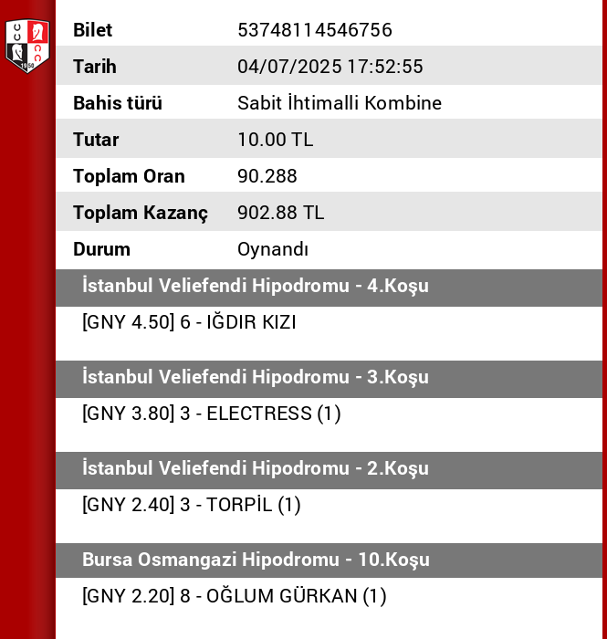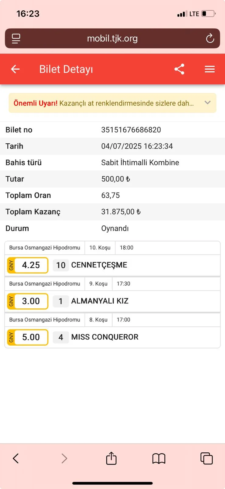 huseyin4635 Bursa 2’nci altılıdan umutluyum, ayrıca sizin için de akşam kendimce İstanbul tahmini yazmaya çalıştım ve yayınladım, ondan da UMUTLUYUM…