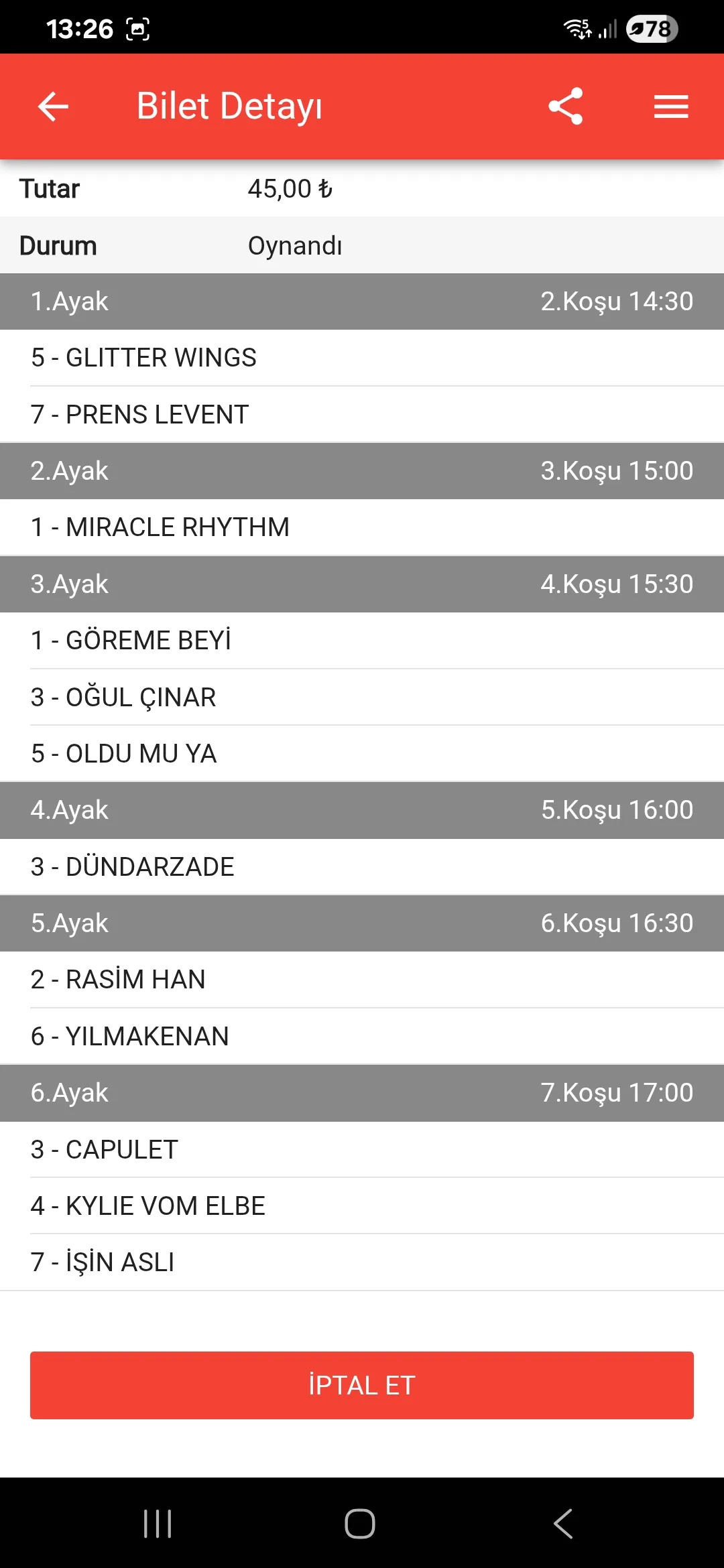 6.ayak /// Baska kaydı olmasına rağmen bu yarışa kaçan Yilmakenan