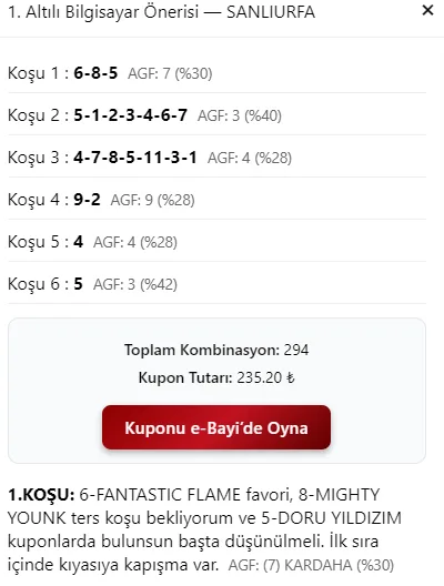 Oynadığın altılıya değer mi ne gelirse ne verir onu da görebiliyorsun, kuponu ona göre oluşturursun :)
