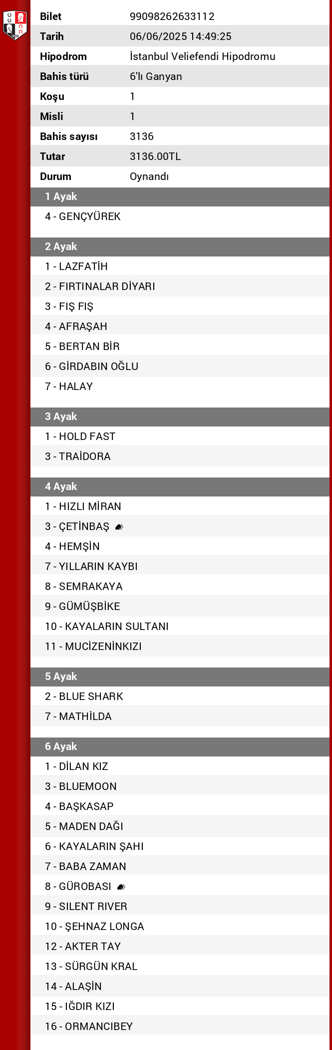5. Koşuda 6 NUMARALI ROZERYA M.KAYA idaresinde dikkat edilmesi gereken bir at takibe alın bugün o gün bence. Sablonumu yarısa 15 dk kala paylasicam
