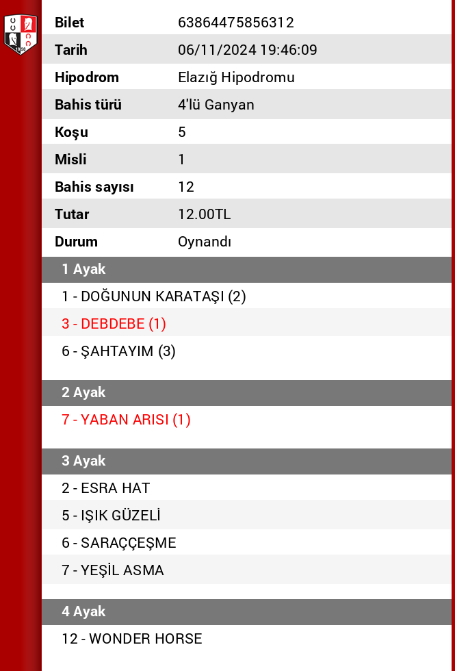 3.ayak= 6 ŞAHTAYIM son yarış çok çok iyiydi formda kazanmasını bekliyorum HEPSİ
