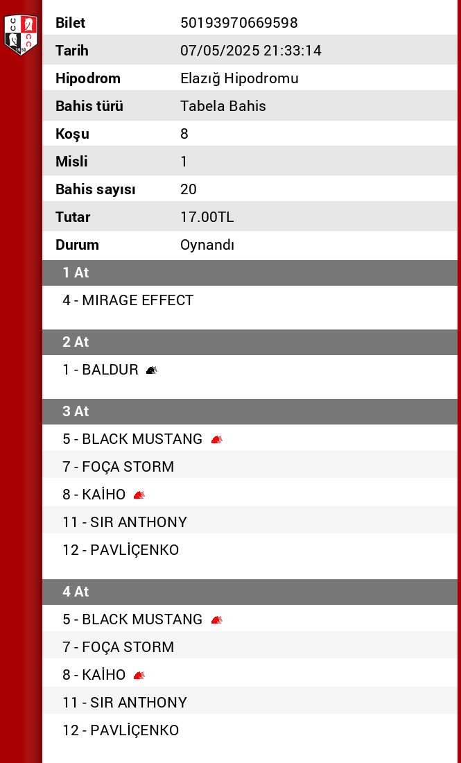 4.KOŞU : 1 KEROSENE 2 MERTPAŞA 3 OĞLUM ŞİRİN dışına çıkmaz gibi