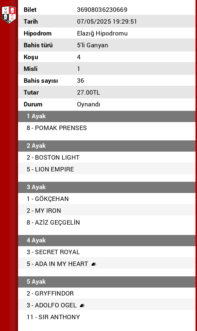 Tabela ayağı SECRET ROYAL’siz oynamayın derim naçizane herkese bol şanslar…