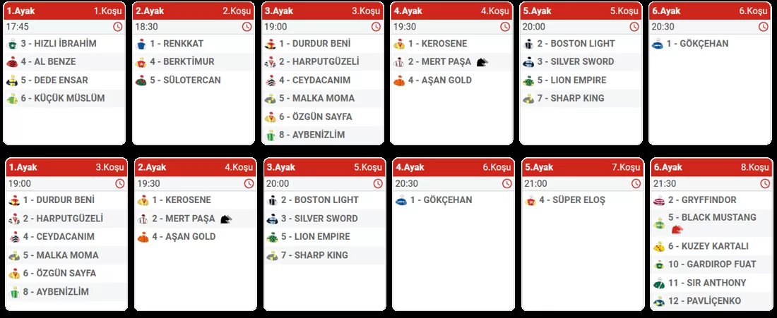 Bol sanslar usta.emeklerine saglik.BOSTON LIGHT ta sana katiliyorum.sadece kafami kurcalayan silver sword cok sacma tempolara cikarir mi yarisi?öyle olursa HAKMAN süpürür. muhtemelende ikilisi böyle biter.Bence cok iyi durumda..ancak günün kalesi bana göre son yaris görüntüsü ile artik kazanma zamani gelen MALKA MOMA olur.gelmemesi altilinin dogasina ihanet.heekese bol sanslar..