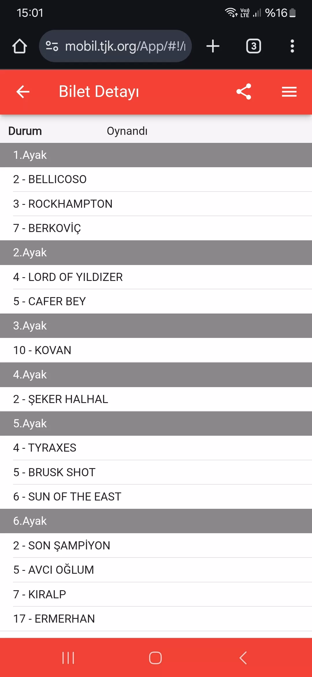 3.AYAK: 8 SAFDERUN OĞLU 10. ayda kazandığı koşuda derecesiz bırakılmış. Ne oldu hatırlamıyorum ama iyi çalışmaları ile koşuya katılacak. Favorileri yanına ekliyorum.