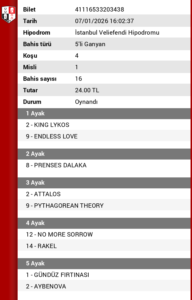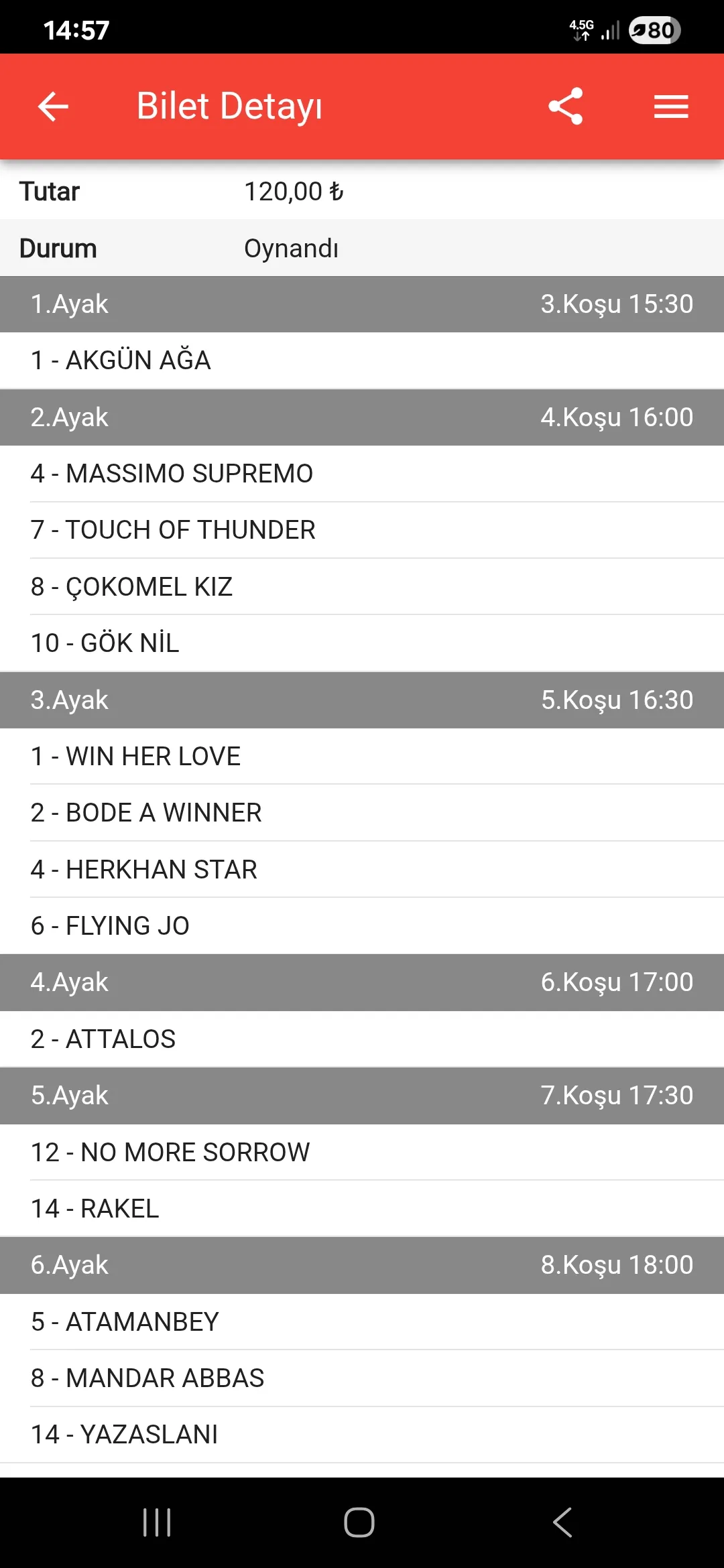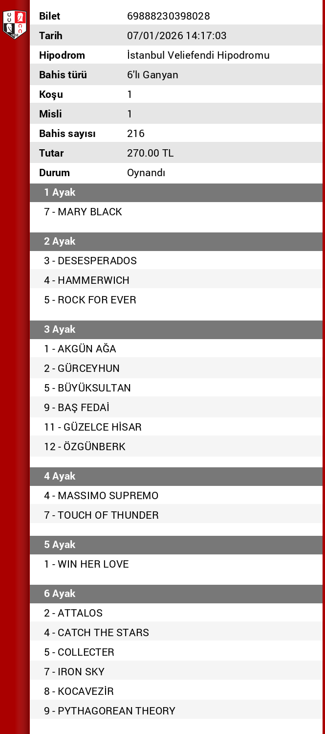 1 ci altılı kafa 2 ikinci ayak senin 5 girdim yatıramadim yetişmedi şimdi 4 at 6 at bekliyordum böyle şansın ben