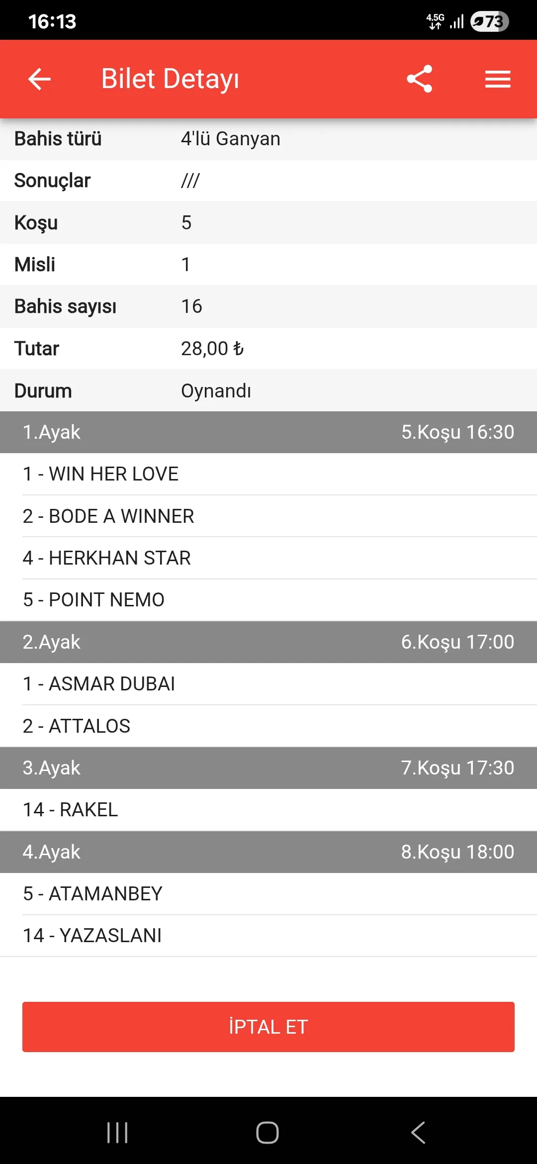 Bu 4 nolu tayı anlayamamışız demek ki favoriymiş at.
