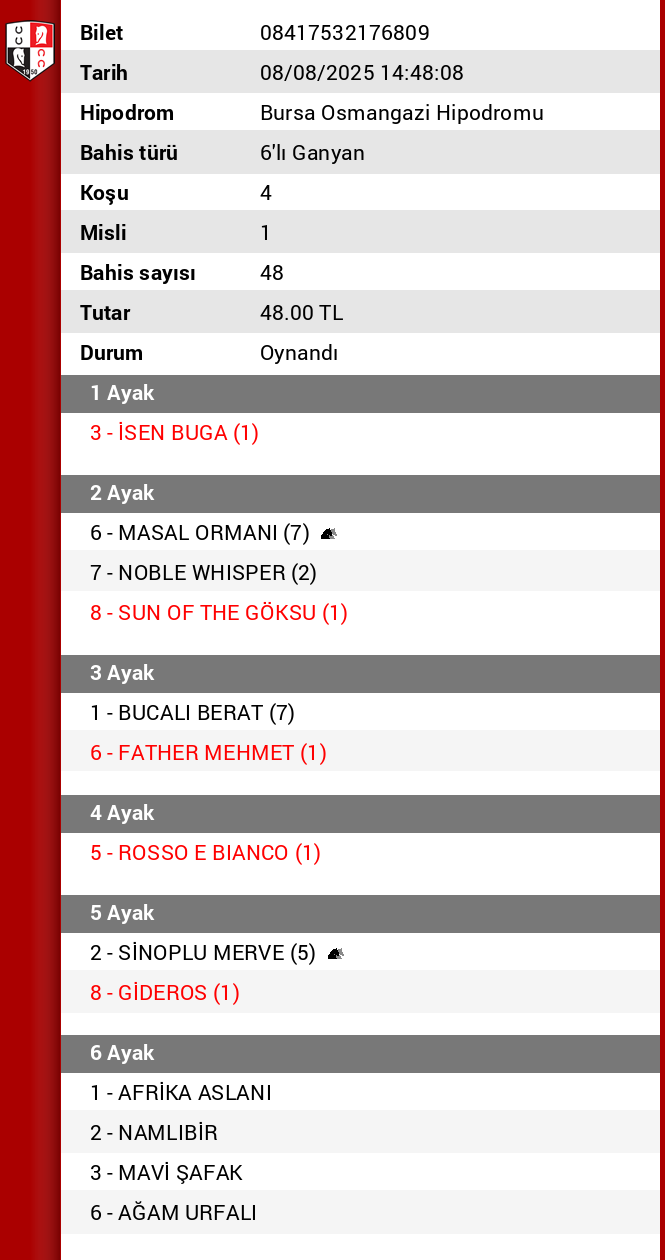 6 koşu 1 BUCALI BERAT küçük kuponlara…. Hepsi