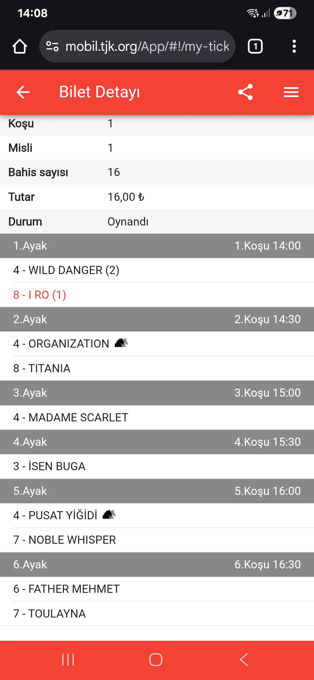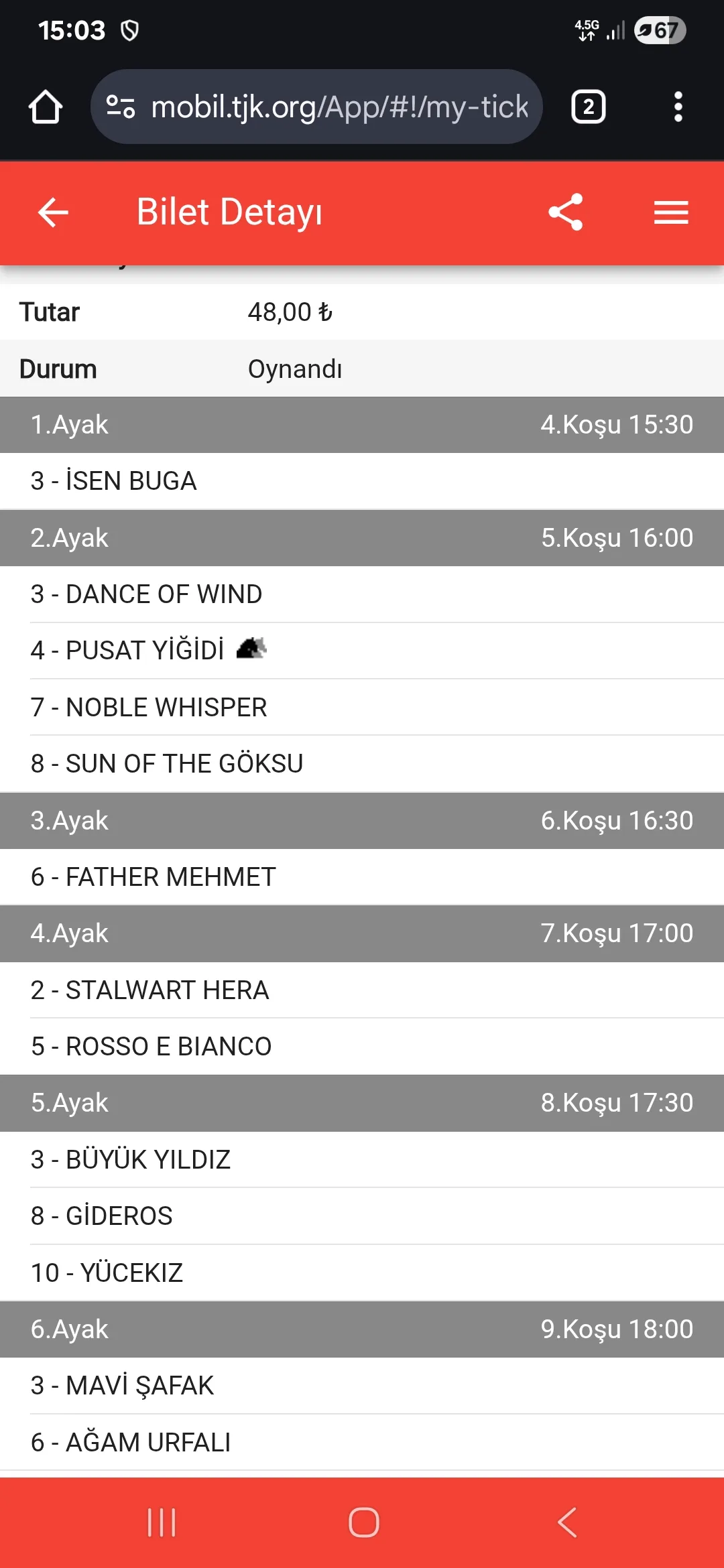 TJK Bilet Detayı