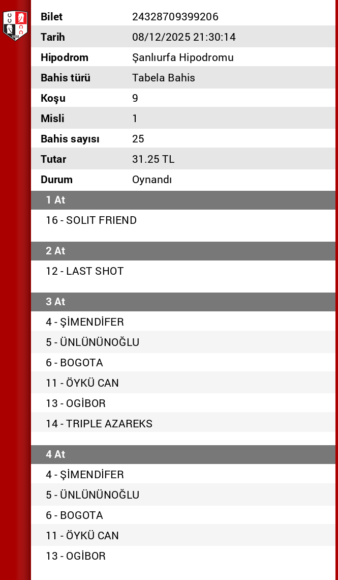 6.KOŞU : 1 ARAPÇELİK 3 İLKAYOĞLU ilk iki at bu isimlerin yanına mesafe kısa ama 16 PALA SALİH hızlı giderse ters gelebilir aman dikkat