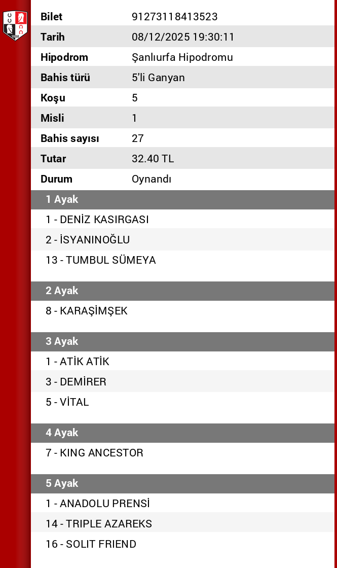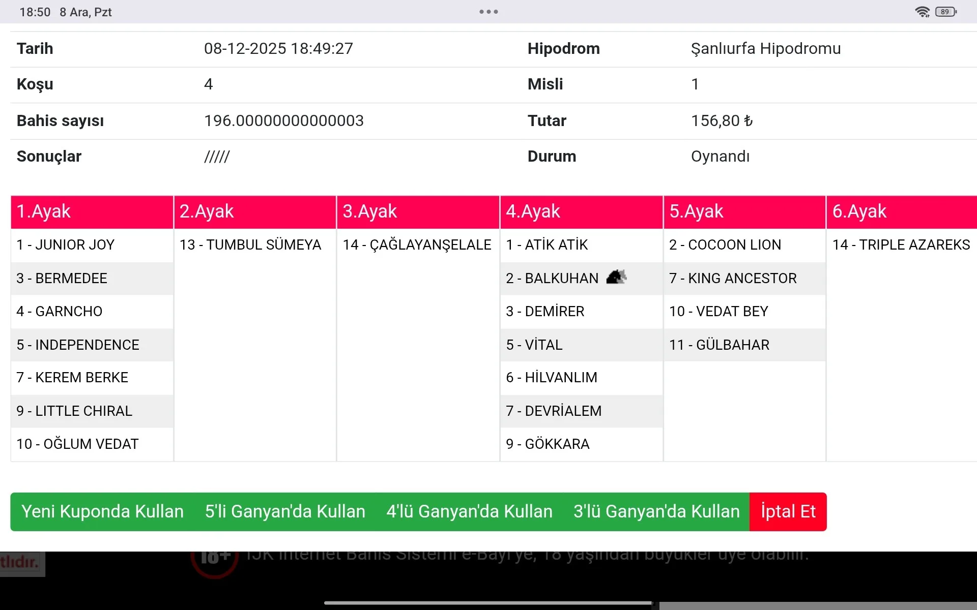 İki at iki at üç at üçlü ganyanım vardı birle iki yarıştan çıkmış agf geldi bende yok 16 -1-2 vardı 😄