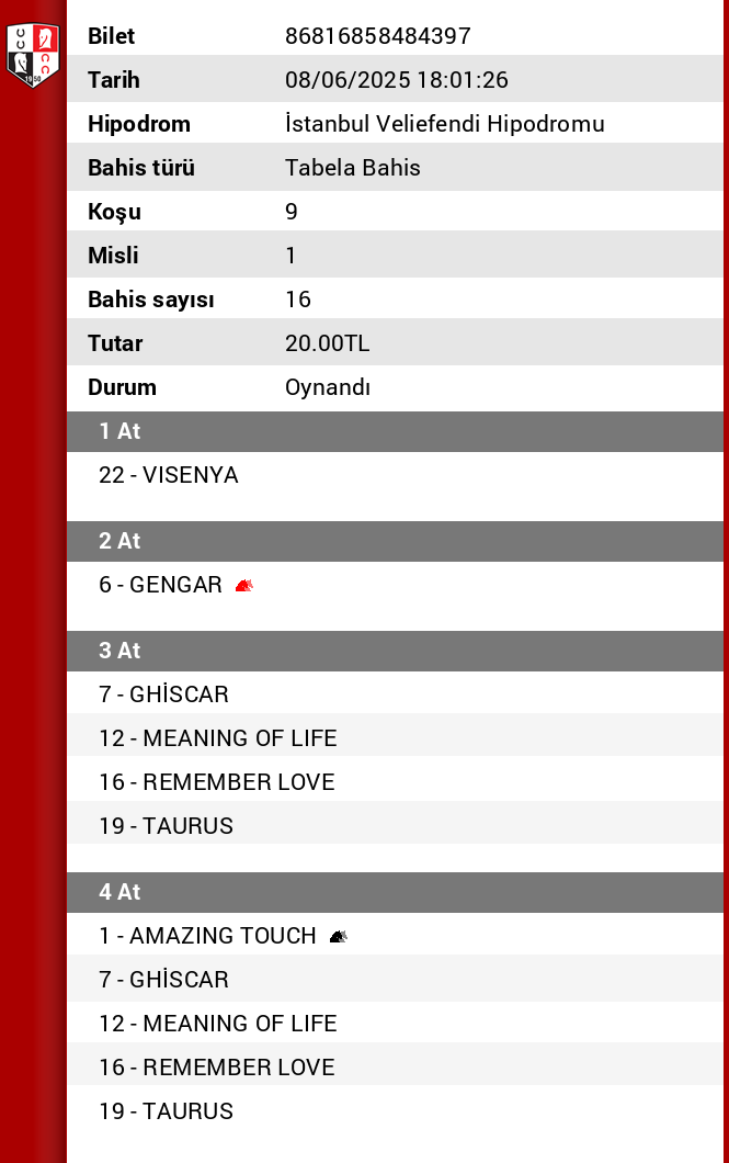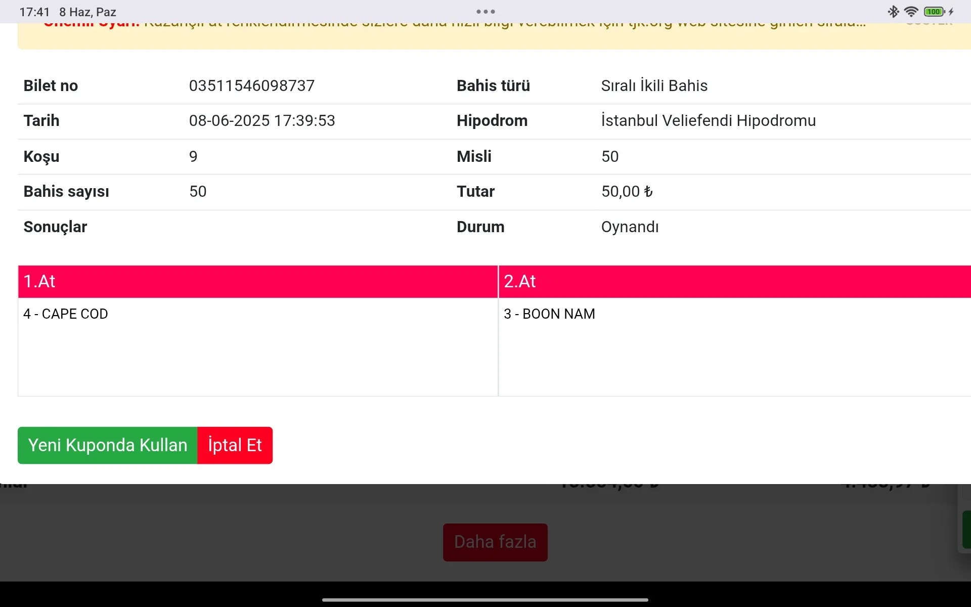 Tarih 08-06-2025 14:10:46 Hipodrom İstanbul Veliefendi Hipodromu