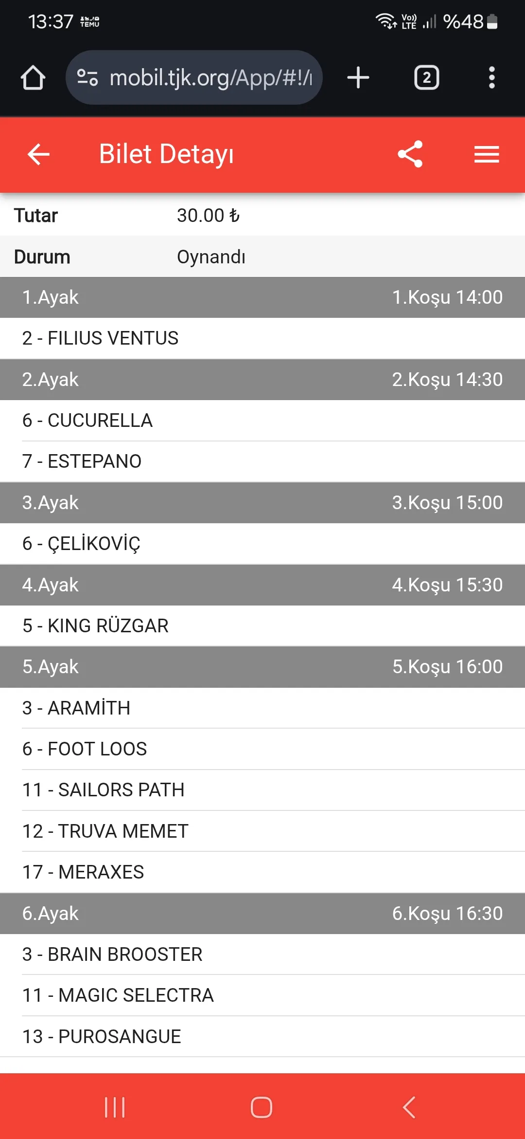2.KOŞU : 7 ESTEPANO nun bu defa rahat kazanmasını bekliyorum geç kalmaz ise yoksa 11 RADATİVE 6 CUCURELLA 13 TOUCH THE CLOUD  1 KAVALA GÜCÜ  18 SULTAN OF HORSES yazılabilir