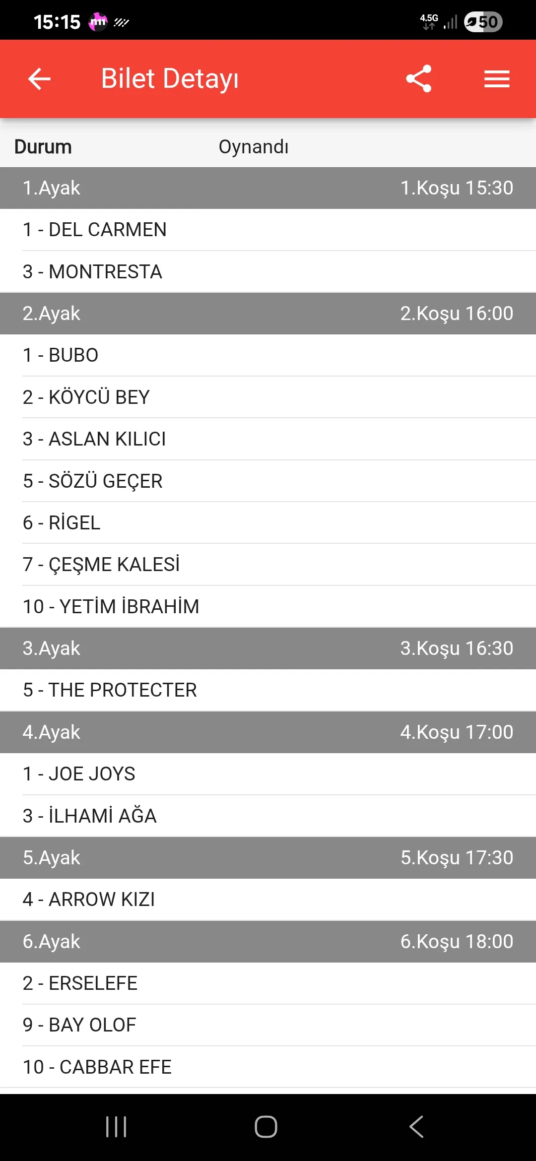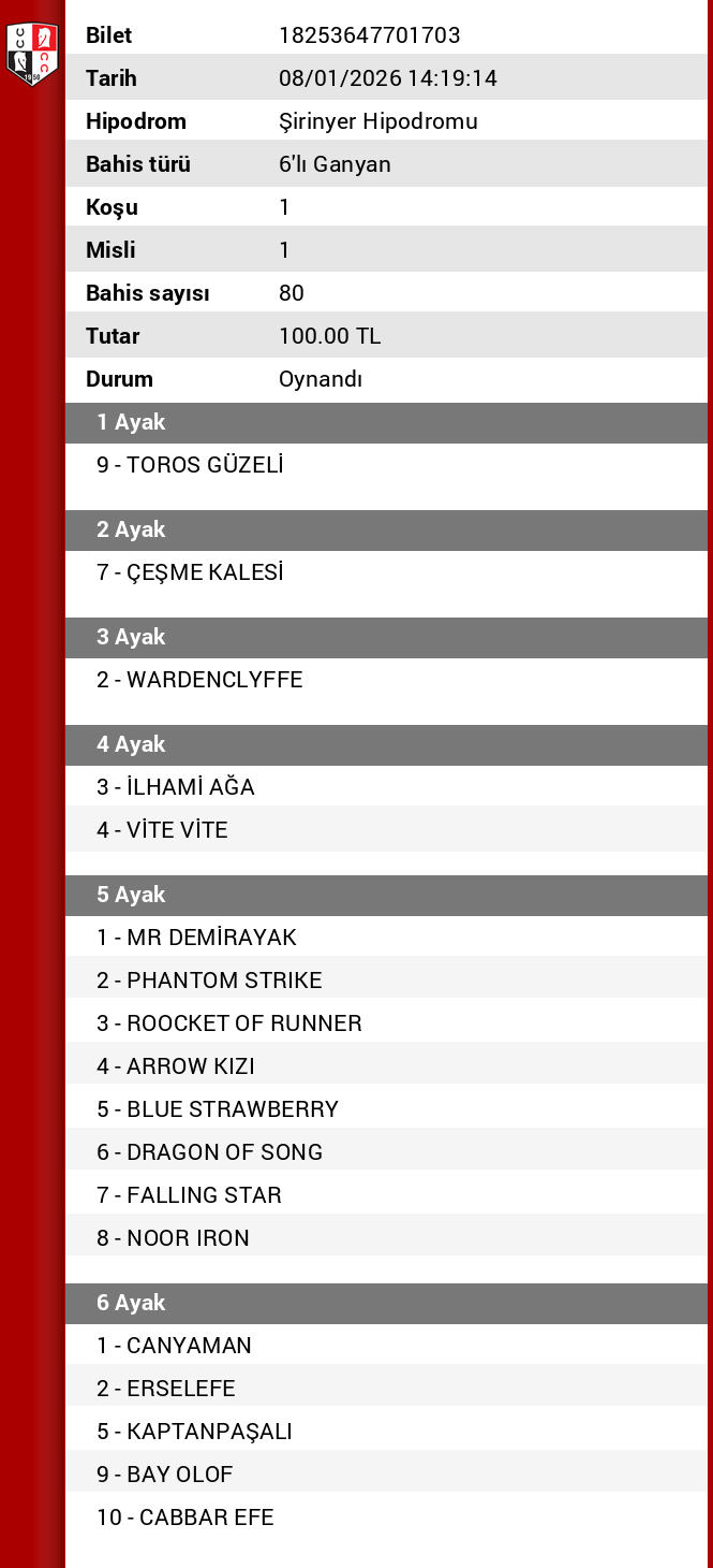 Bilet no 78240638389713 Bahis türü 6’lı Ganyan