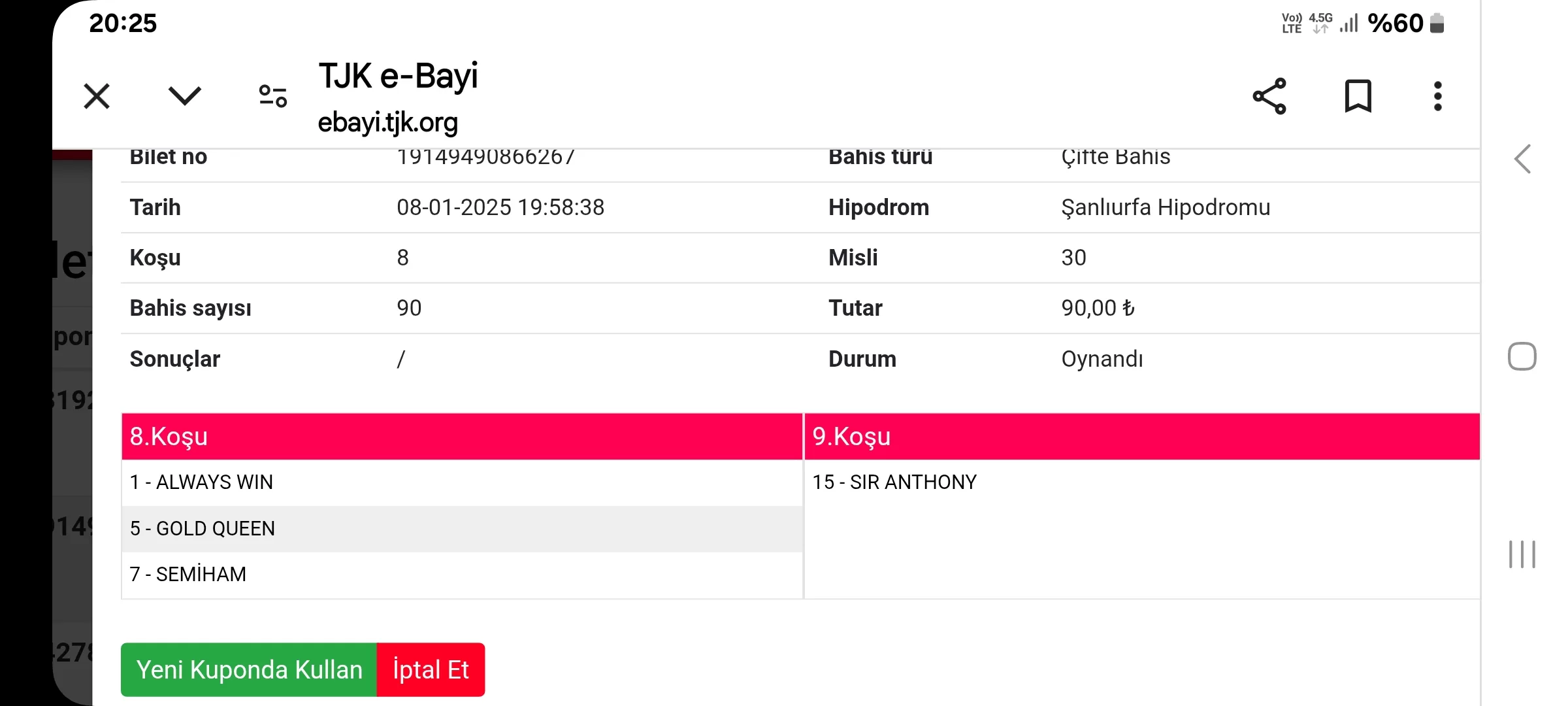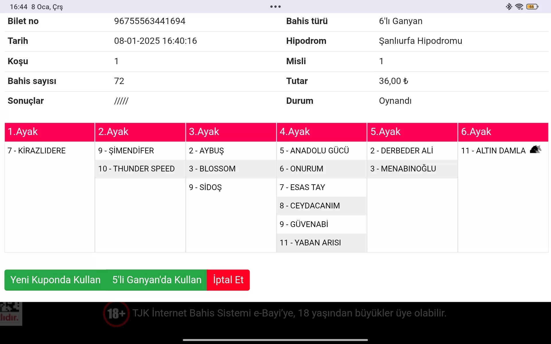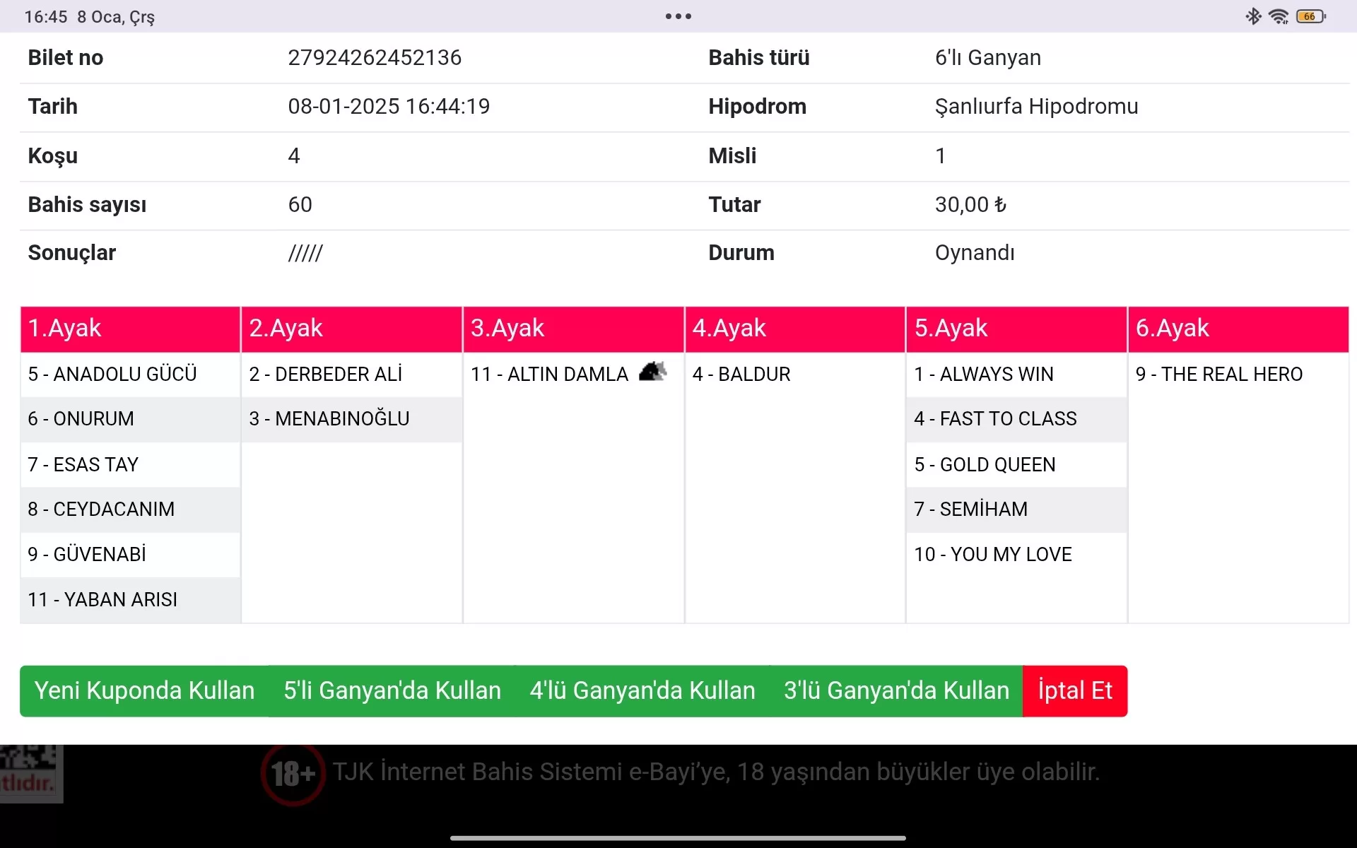 Diğer kuponun 3 atmış öbürüne göre baktım, tüh.