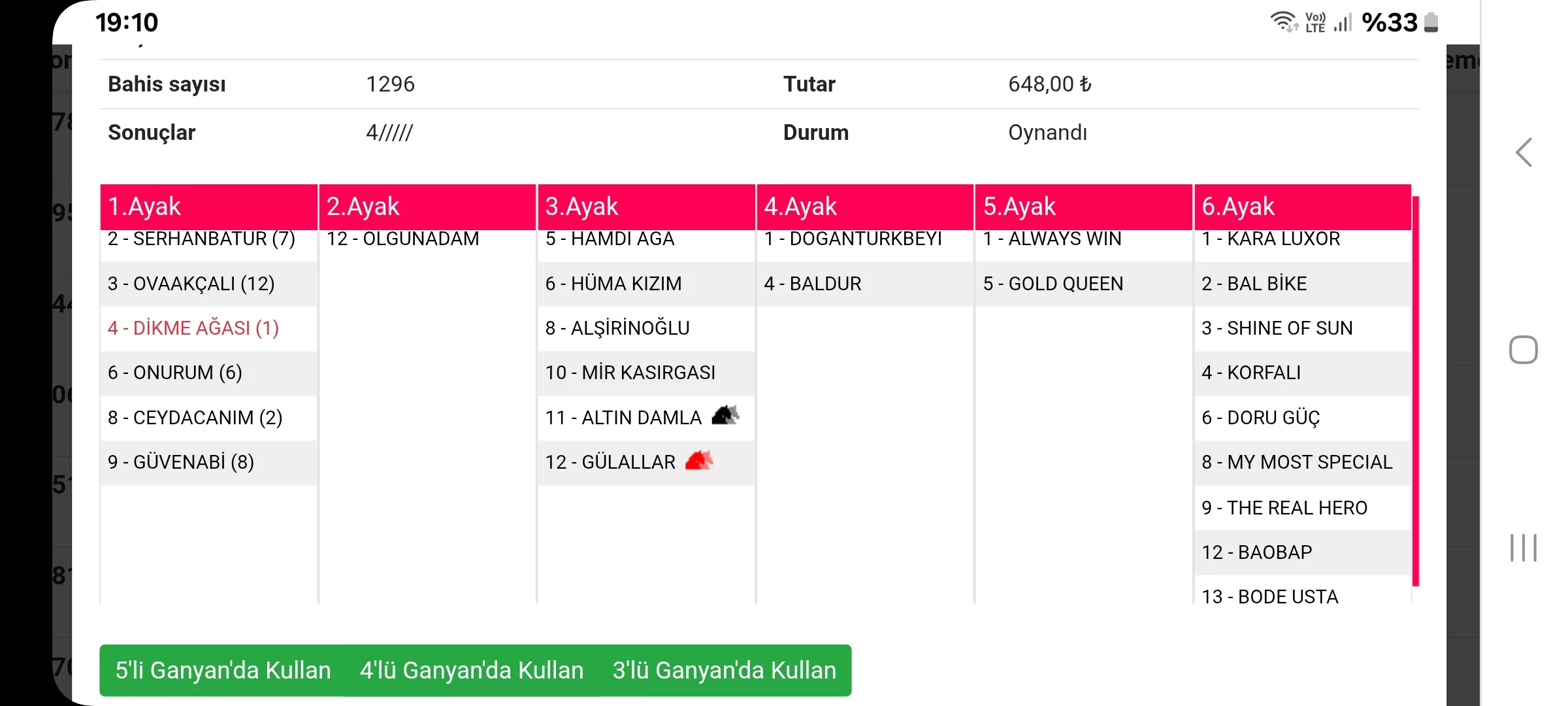 Almasaydın keşke. 3ü tutmuyorum, favori diye ekledim. Onu eklemek için H olan 4. ayaktan iki at cıkardım